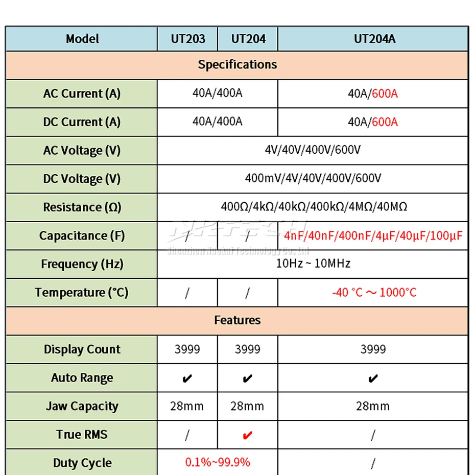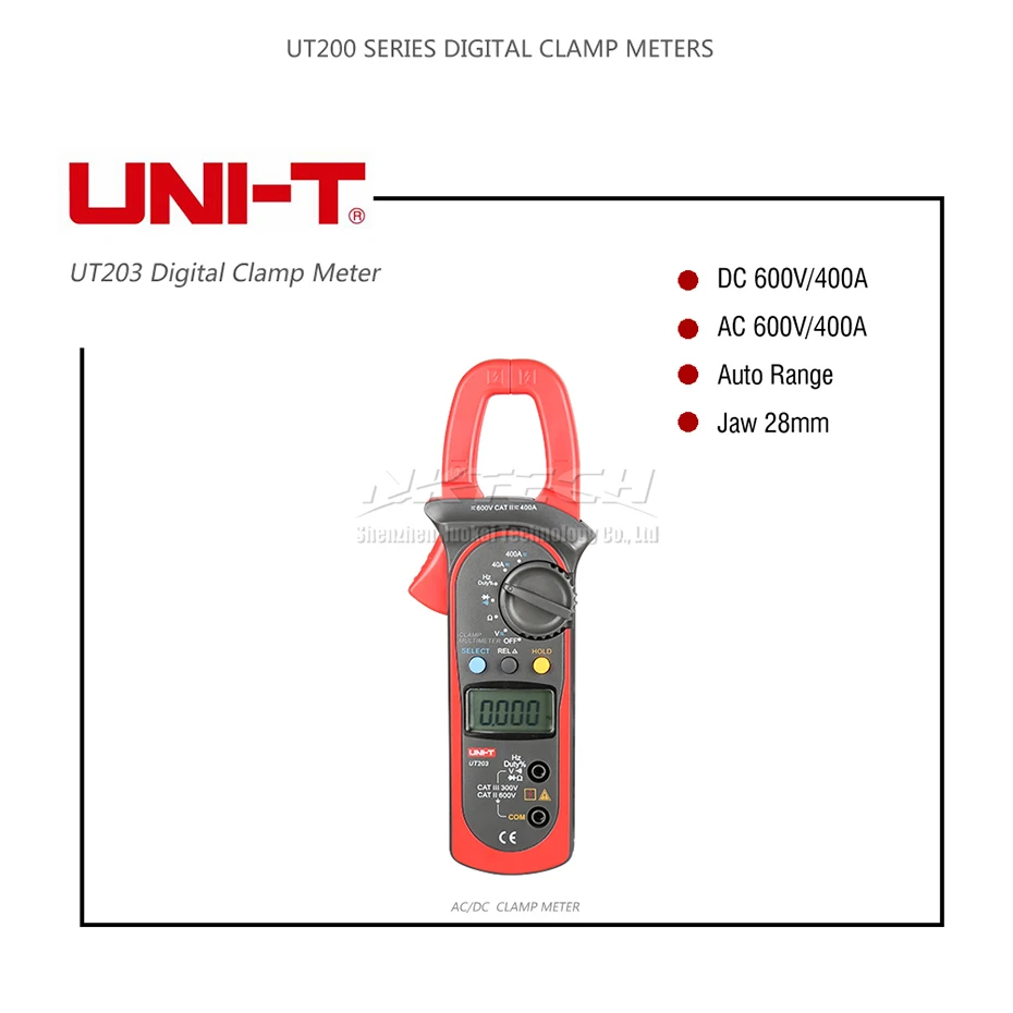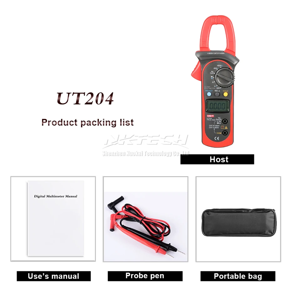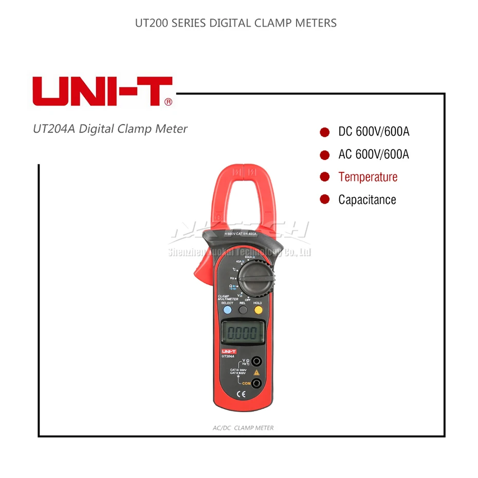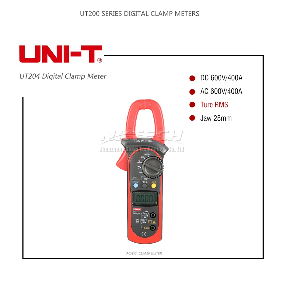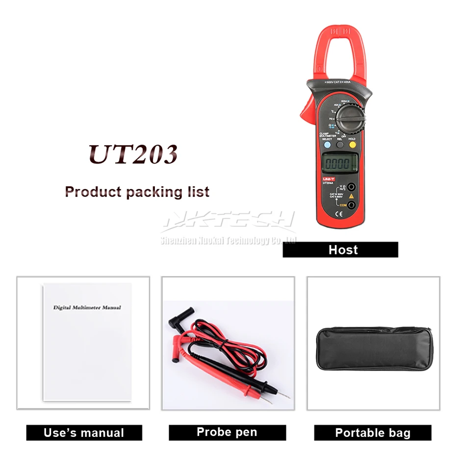 Цифровой мультиметр-зажим UNI-T UT203 UT204 UT204A, Вольт постоянного и переменного тока, частота, сопротивление, рабочий цикл, тест на диод с автоматическим выбором диапазона