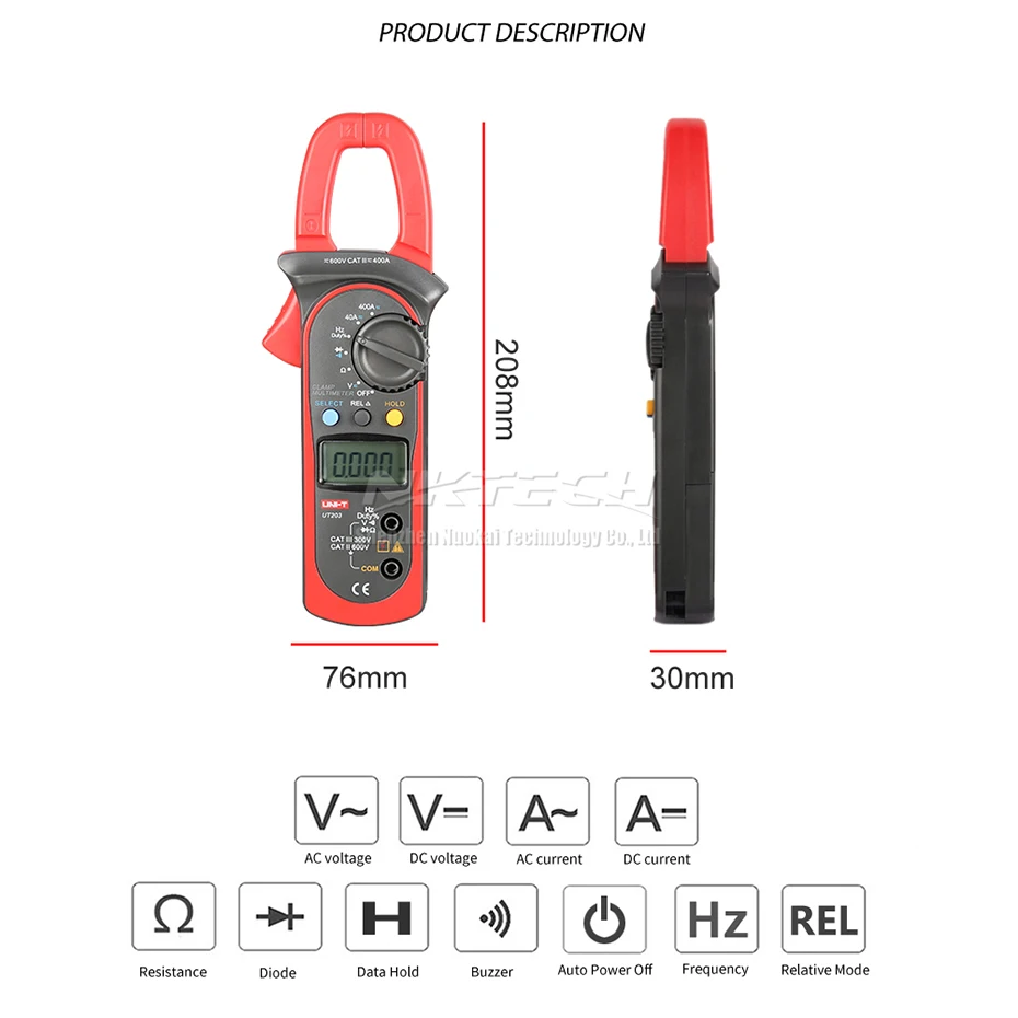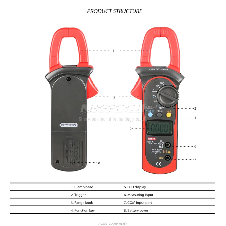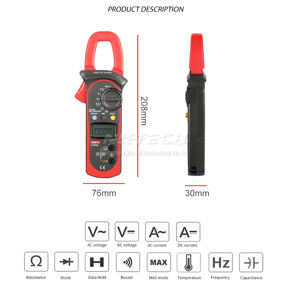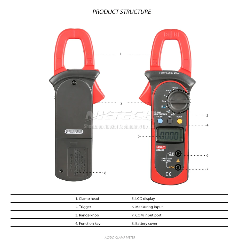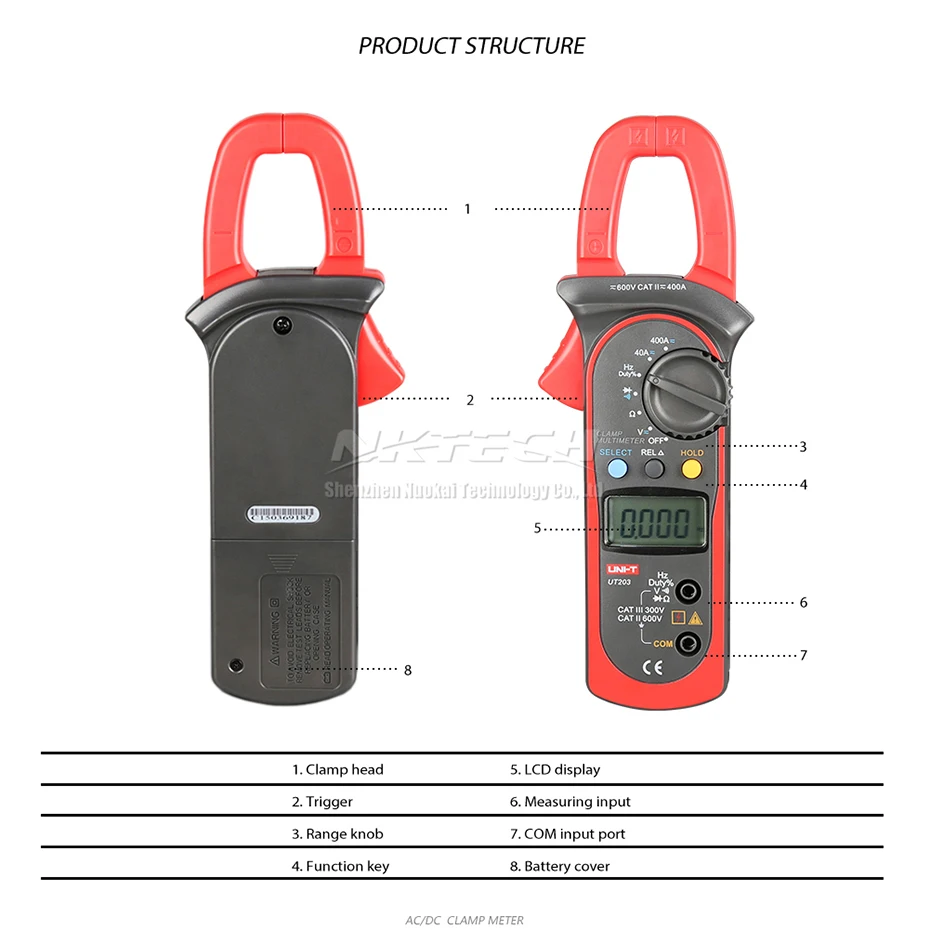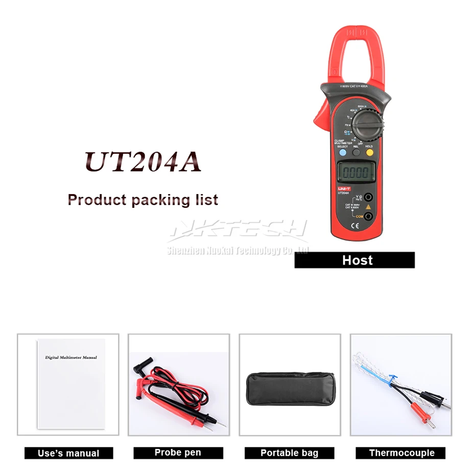 Цифровой мультиметр-зажим UNI-T UT203 UT204 UT204A, Вольт постоянного и переменного тока, частота, сопротивление, рабочий цикл, тест на диод с автоматическим выбором диапазона