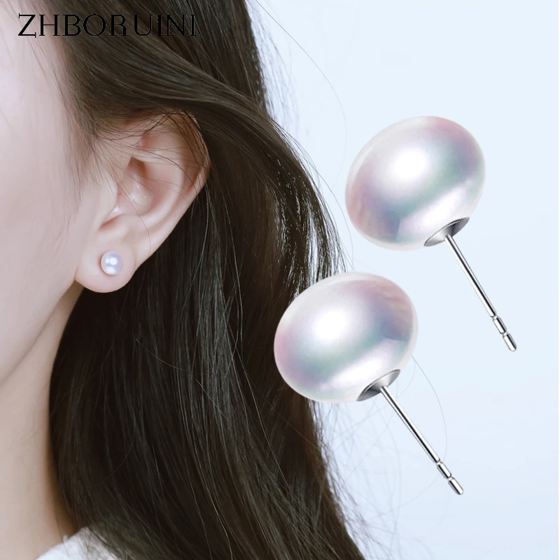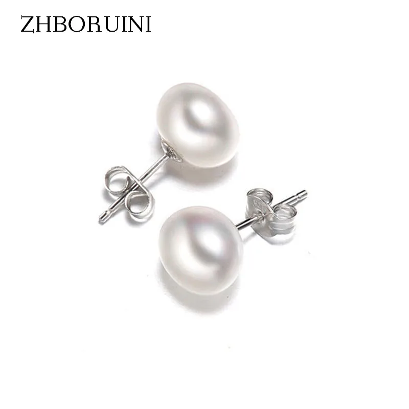 Жемчуг бренда "ZHBORUINI" серьги из стерлингового серебра 925 пробы, ювелирные изделия для женщин 7-10 мм, сплющенные серьги-гвоздики из натурального пресноводного жемчуга, Подарочные ювелирные изделия