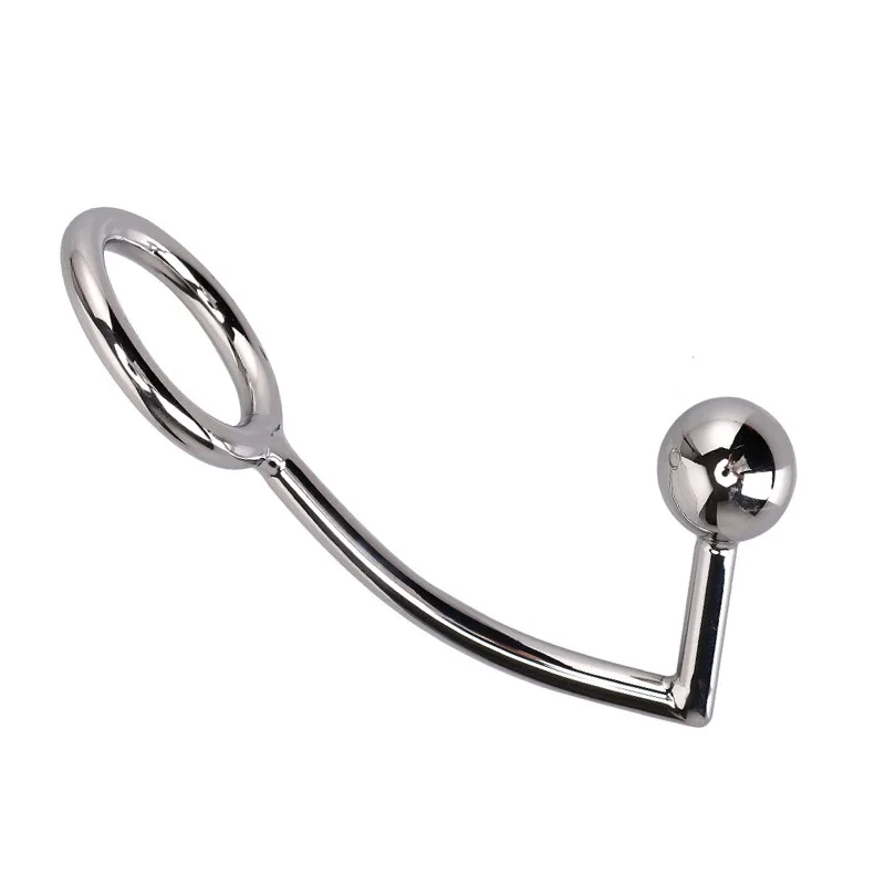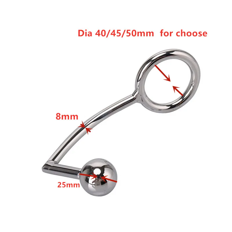 Анальная пробка на выбор, 40 мм, 45 мм, 50 мм, шарик на угловом крючке, с кольцом для пениса, фетиш, целомудрие, из нержавеющей стали, секс-игрушки для взрослых