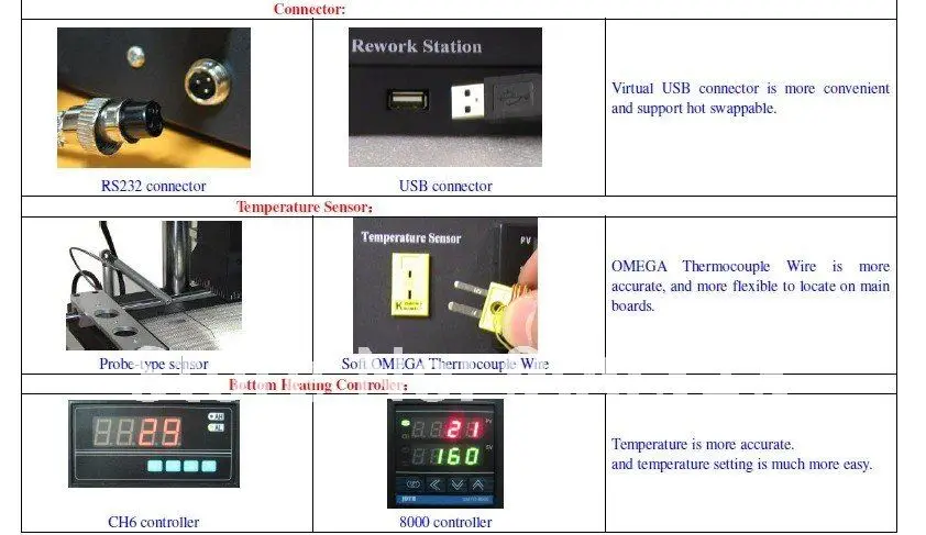 ACHI IR6500 может быть подключен к компьютеру или ноутбуку с интерфейсом USB и может управляться с помощью программного обеспечения IRSOFT temperature. Он может настроить 8 сегментов температуры и 8 сегментов постоянной температуры для контроля. Он может хранить 10 групп температурных профилей одновременно.