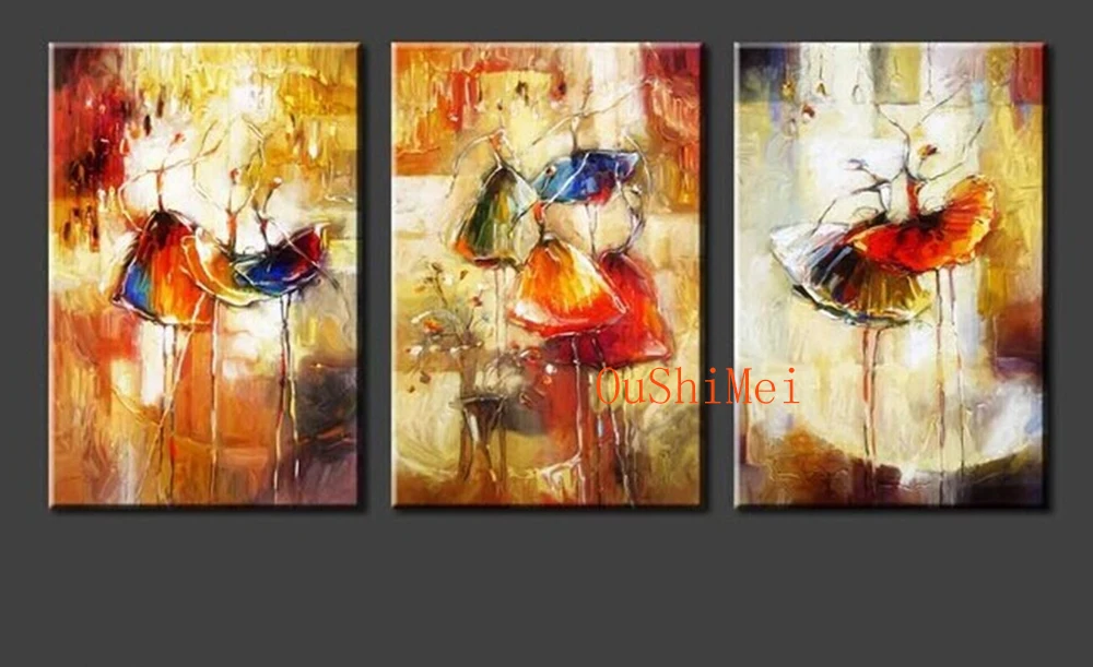 Ручная роспись абстрактные картины дешевая Картина Современный нож живопись на холсте 3P балета картины для комнаты