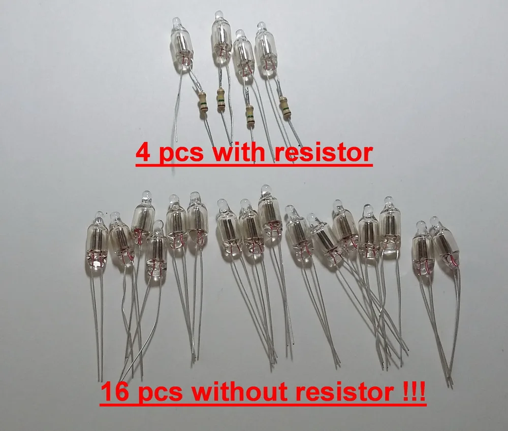 Лампочки с аккуратно припаянными резисторами. От 220 вольт светятся ярко. Мне понравились.