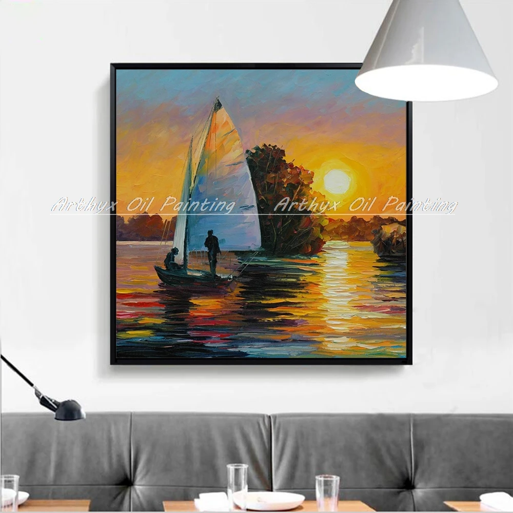 Описание товара:Ручная работа, высокое качество, Современная Настенная живопись, парусная лодка, палитра, нож, пейзаж, картина маслом на холсте, украшение для гостиной, картина.