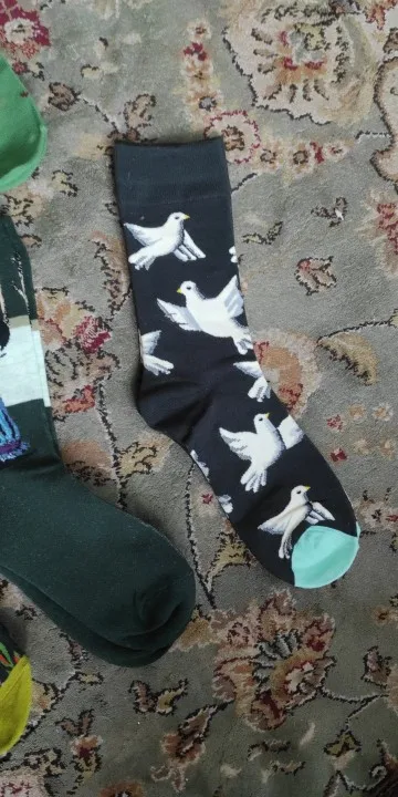 Пришли носочки меньше чем за месяц, запакованы неплохо, как для носков. Заказывал на 42ой размер, подошли отлично. Носки хорошо растягиваются, картинка не плывет и не деформируется. Длина довольно хорошая. Подходит для осеннего-зимнего сезона.
