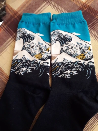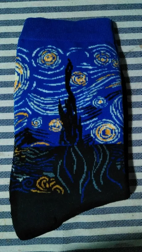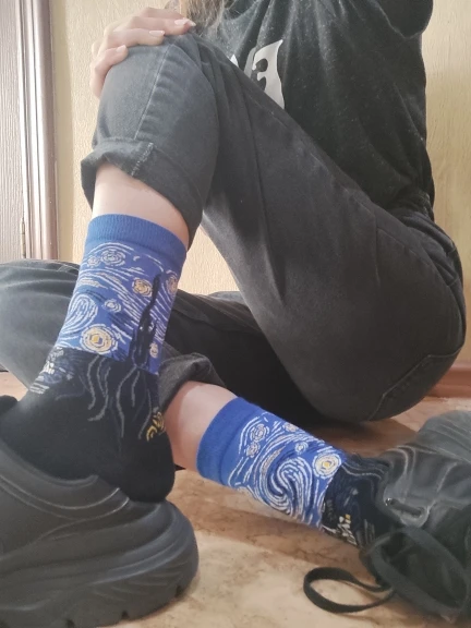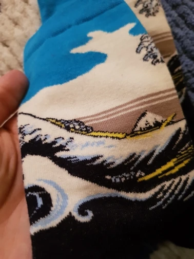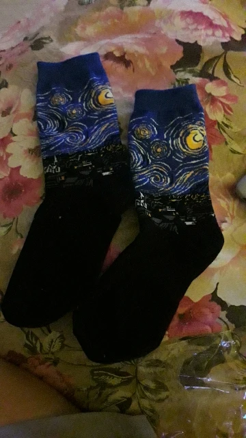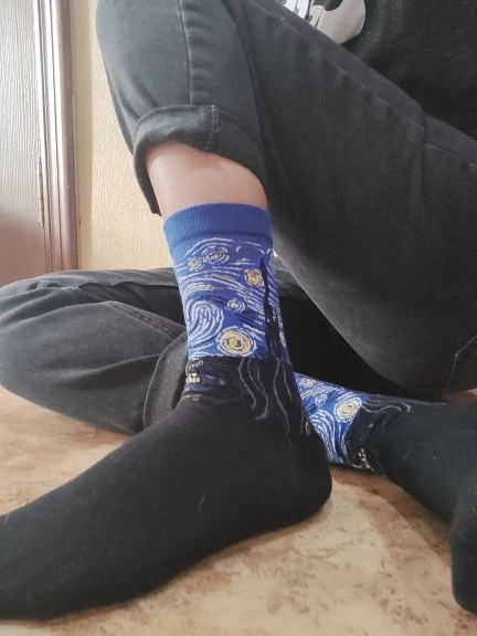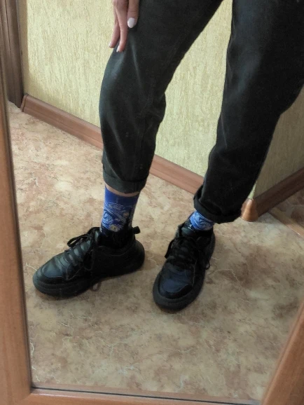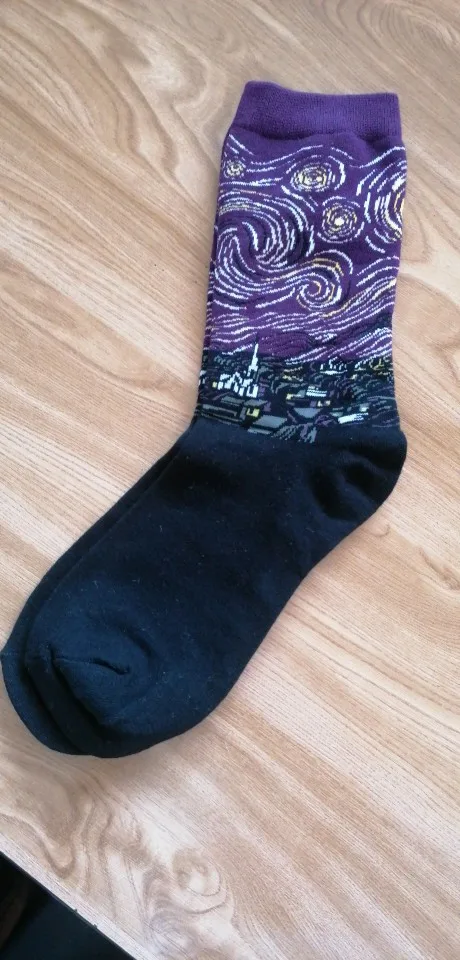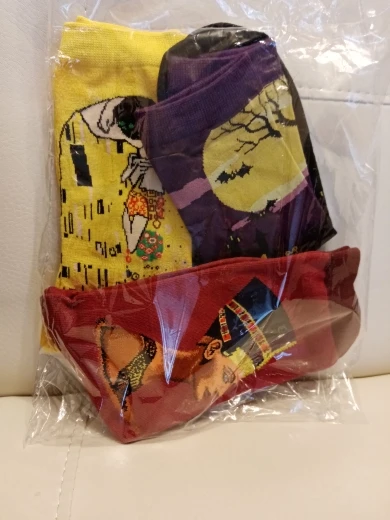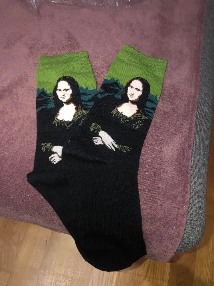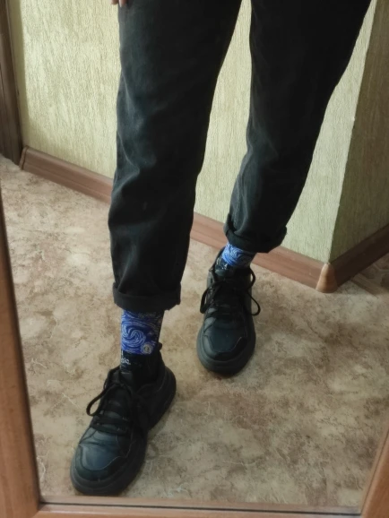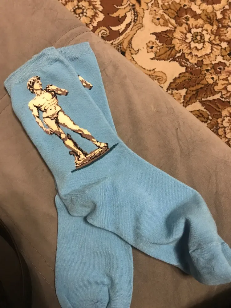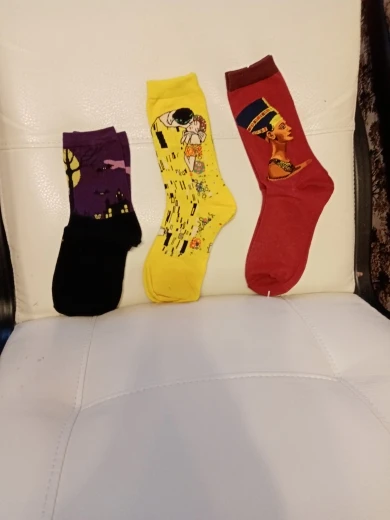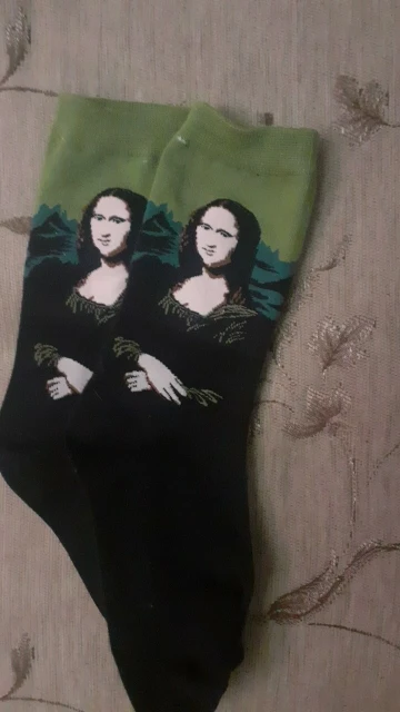 Хорошие носки. Отлично и с прошитым рисунком и даже с рельефной частью, напоминающей тисненую картинку, это очень выполнено. Для толстых ног, возможно, это не лучший дизайн, так как фигуры полноват. Я рекомендую покупать их в основном для оригинального подарка. Хорошо упакованы и доставляются вовремя