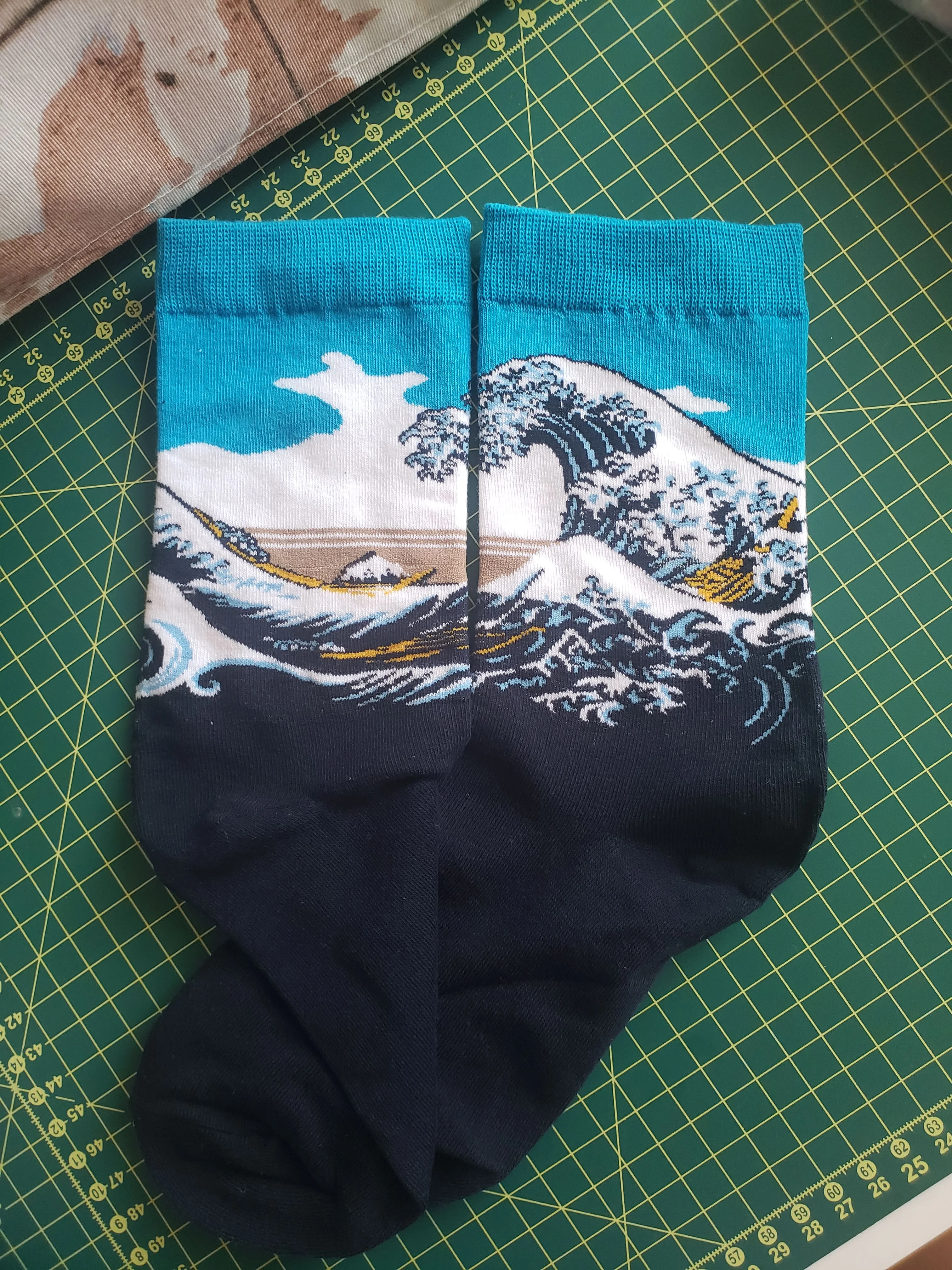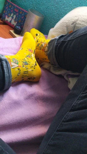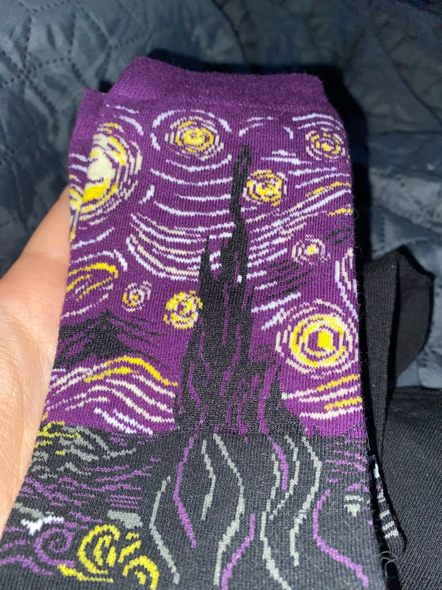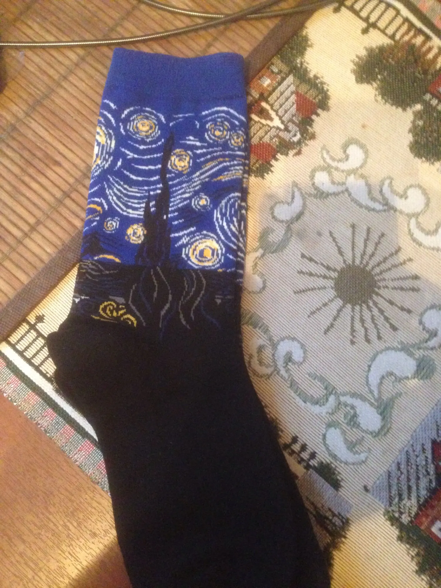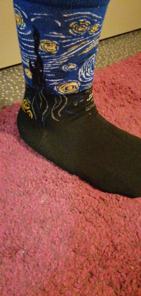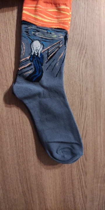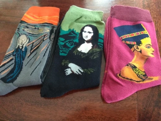 Хорошие носки. Отлично и с прошитым рисунком и даже с рельефной частью, напоминающей тисненую картинку, это очень выполнено. Для толстых ног, возможно, это не лучший дизайн, так как фигуры полноват. Я рекомендую покупать их в основном для оригинального подарка. Хорошо упакованы и доставляются вовремя