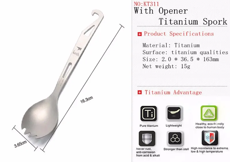 Keith Titanium Spork многофункциональные портативные столовые приборы для кемпинга на открытом воздухе сверхсветильник 15 г KT311