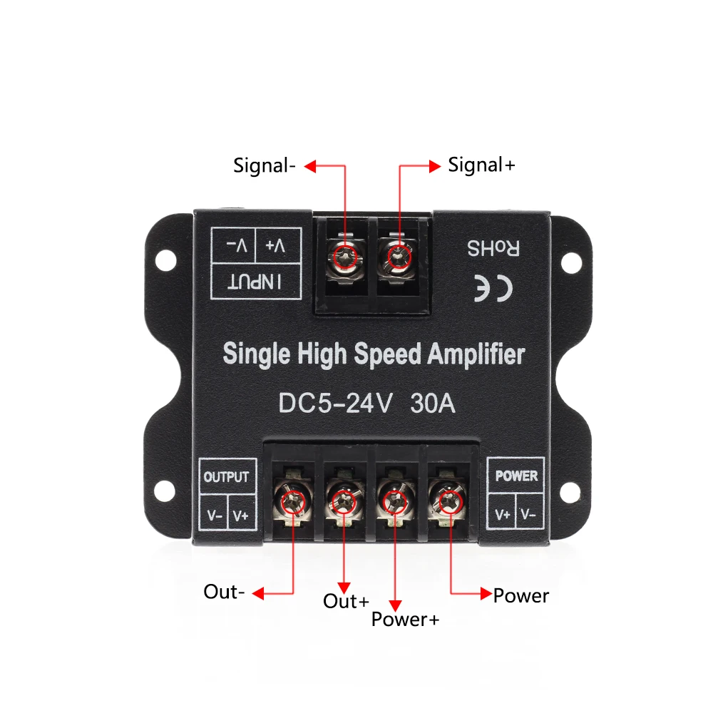 Усилитель для светодиодных лент DC5-24V 30 А, Односкоростной усилитель для одноцветной светодиодной ленты, повторитель мощности, консольный контроллер.