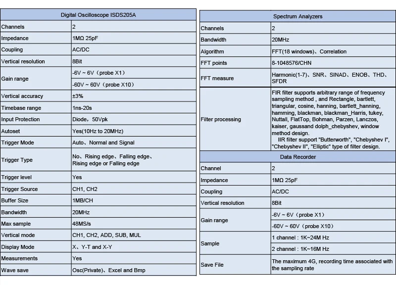 MDSO ISDS205A 3 в 1 Многофункциональный 20 м Виртуальный цифровой осциллограф + анализатор спектра + данных Регистраторы ПК USB осциллограф