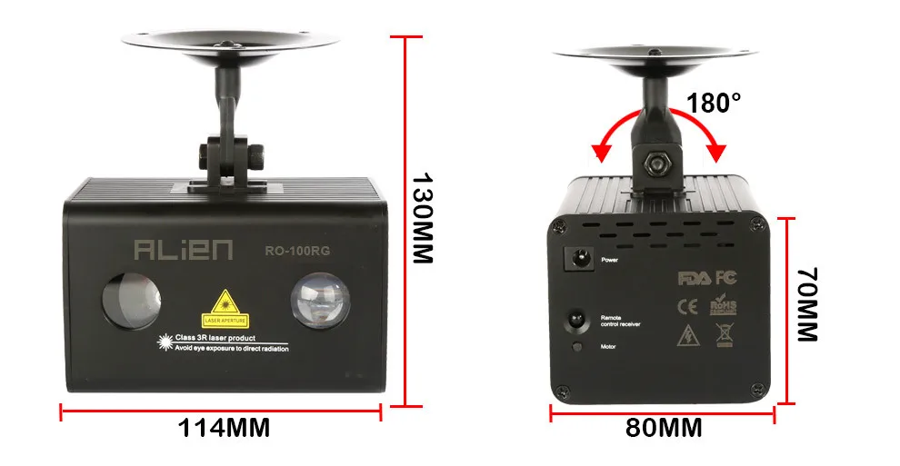 Комплектация: Лазерное освещение x 1; ИК-пульт ДУ × 1; Кабель питания × 1; Кронштейн × 1; Руководство пользователя (на английском языке) × 1