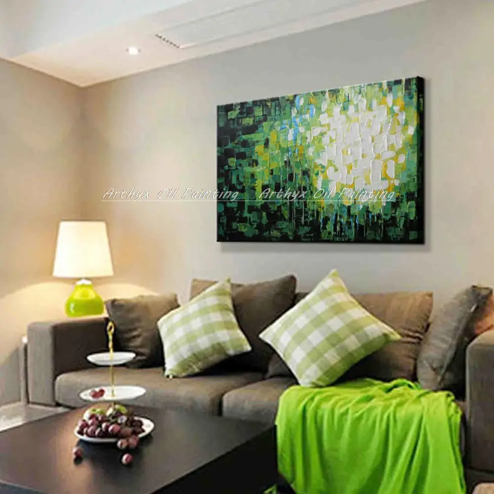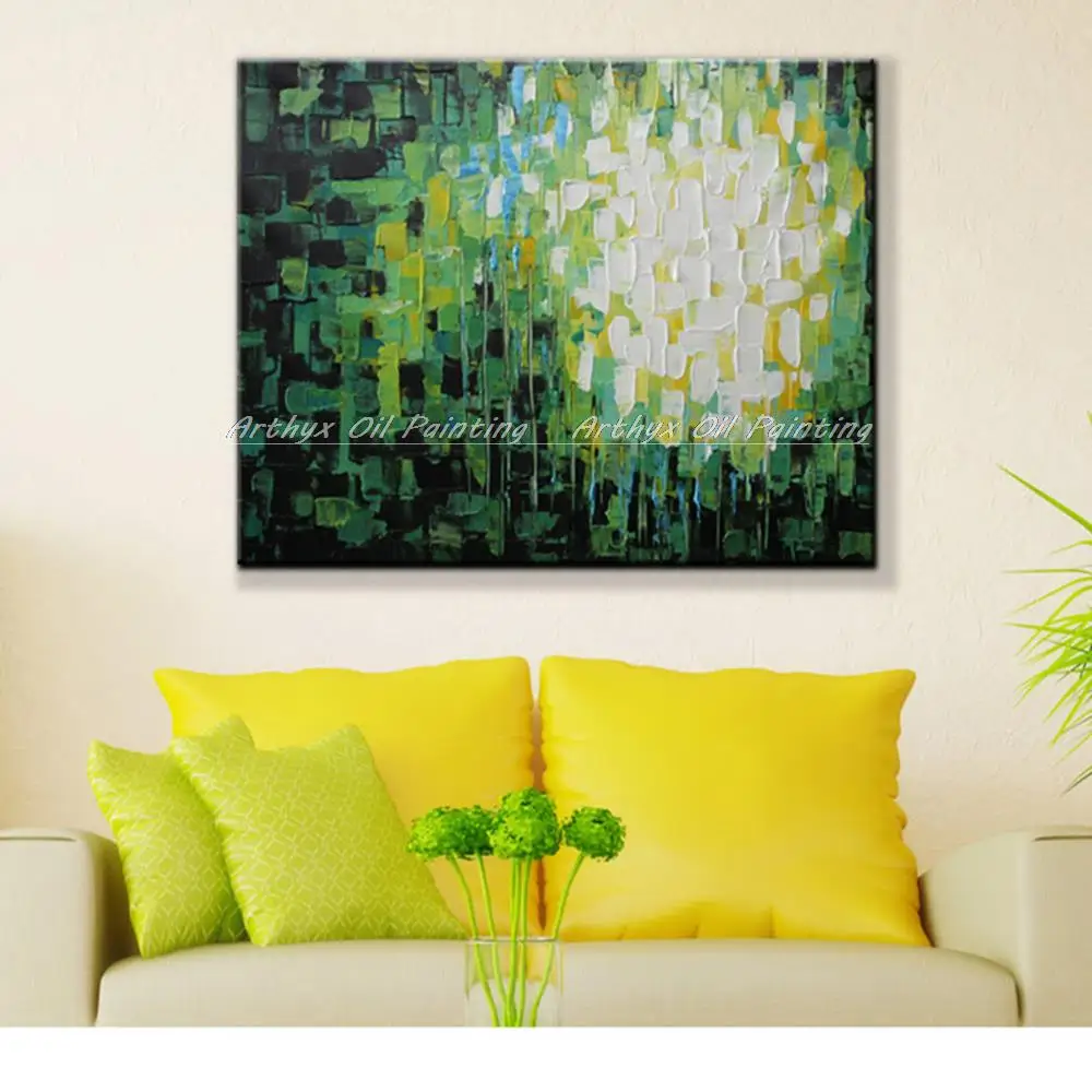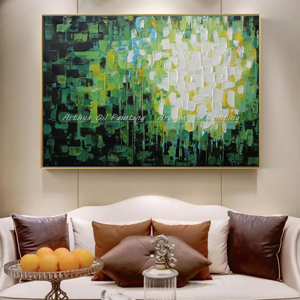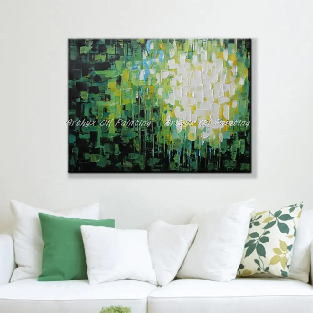 Arthyx ручная роспись, зеленый цвет, абстрактный нож, картина маслом на холсте, ручная работа, настенные картины для гостиной, украшение для дома