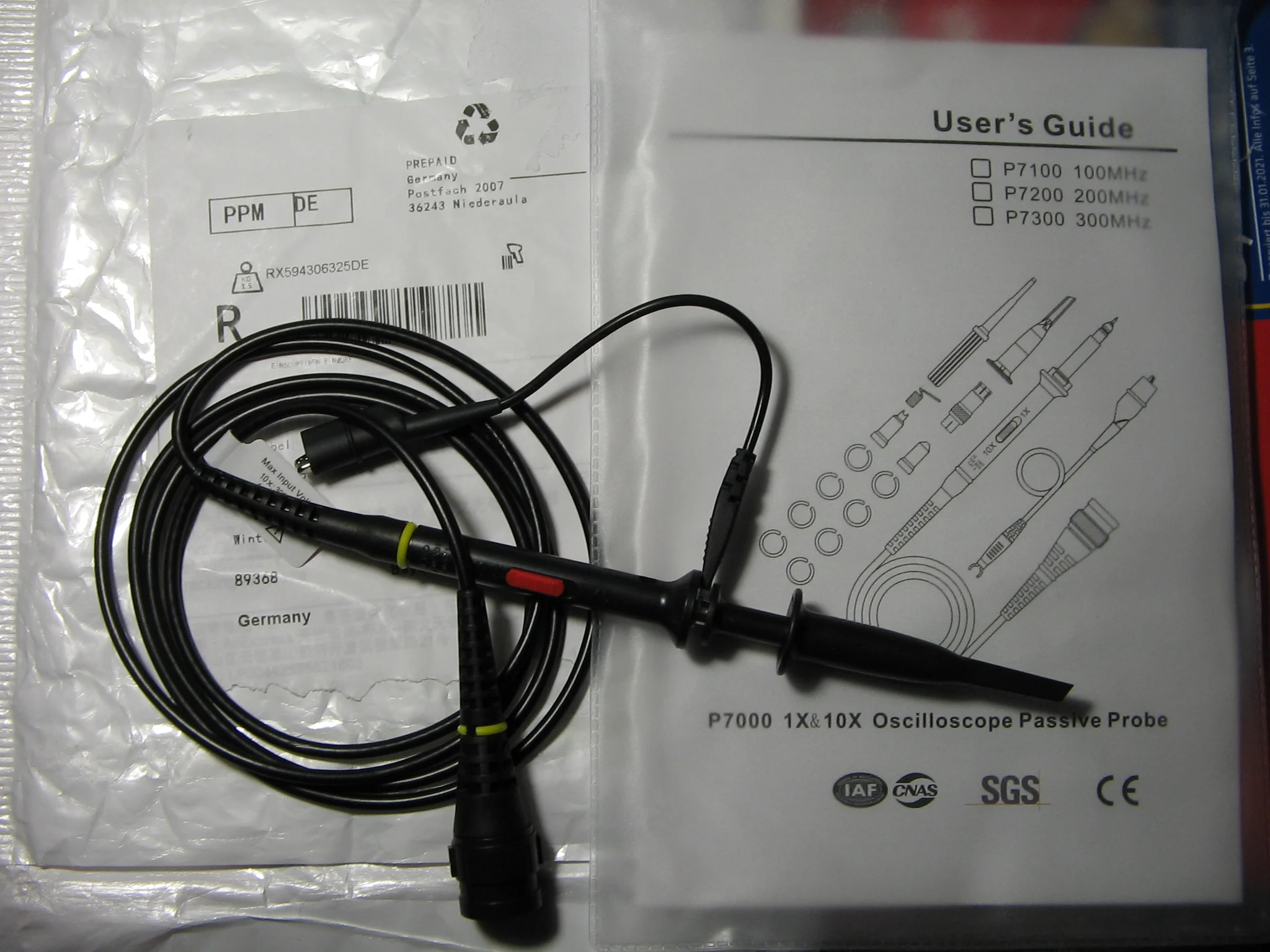 Из области лукавства: в описании не приведена кривая зависимости допустимого напряжения от частоты. Видимо, чтобы не пугать покупателей. Характеристика пришла с пробником - см. картину. Из нее видно, что на частоте 300МГц допускается работать с напряжением амплитудой всего несколько вольт, а на 5кВ Вы можете работать до 20кГц. На самом деле для искушенных это не новость, у большинства продаваемых пробников характеристика аналогичная. У кого-то лучше, у кого-то хуже. Только спец. модели могут работать на таких частотах с кВ. К тому же, не исключено, что производитель намеренно занижает.