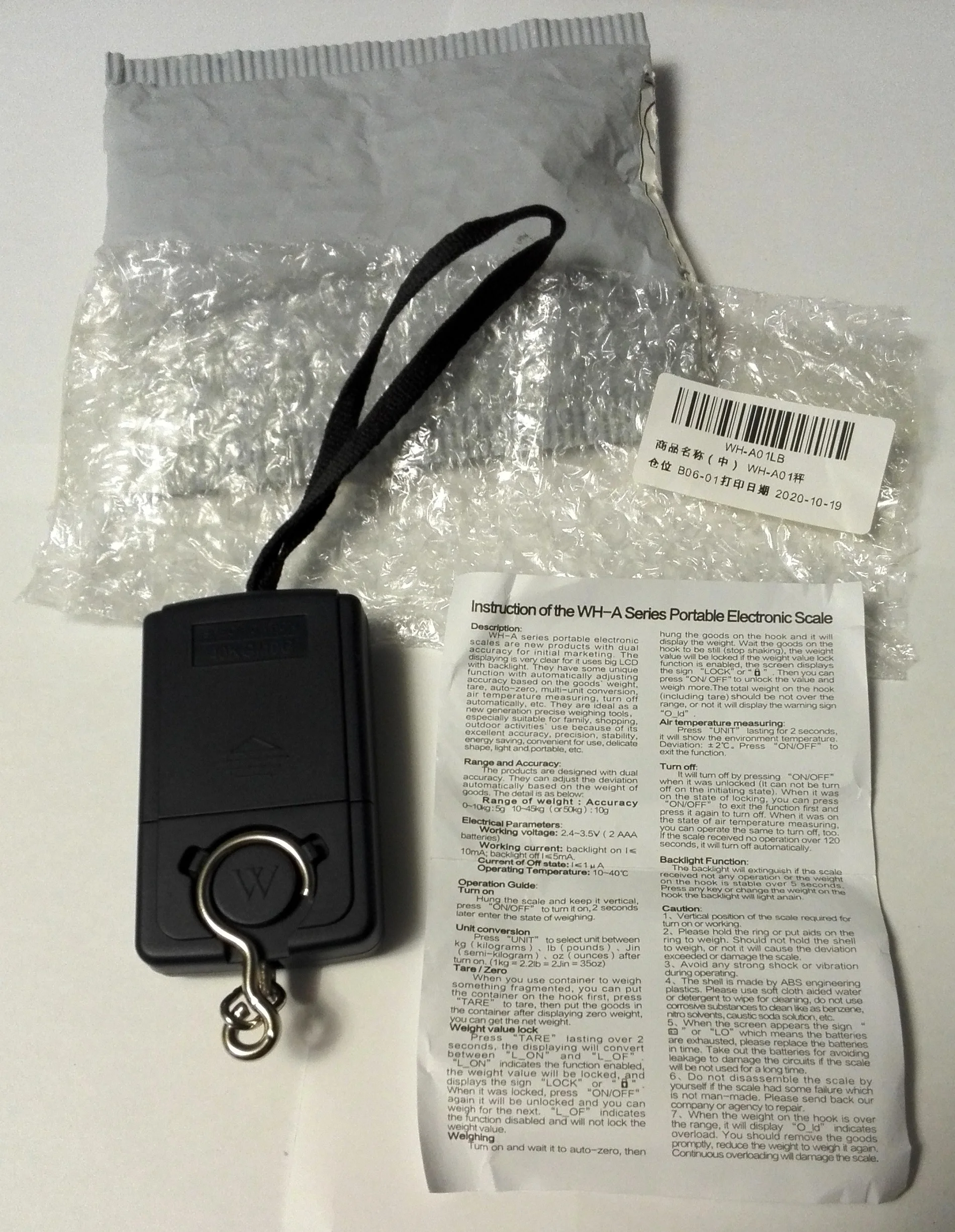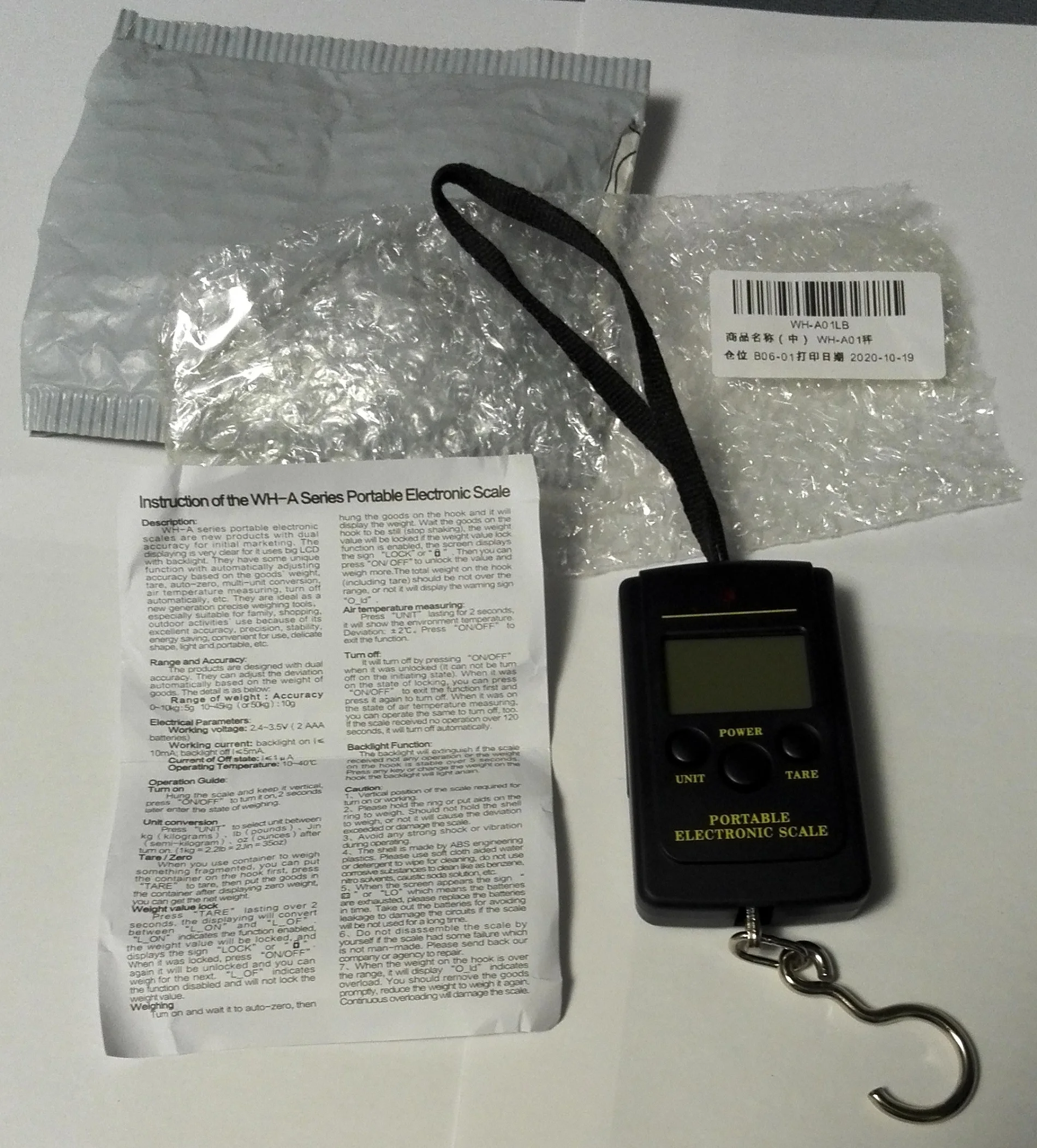 Весовые весы быстро прибыли в Японию. Он был хорошо упакован и поставляется с инструкционной листовкой. Это занимает 2 батарейки AAA (не входят в комплект). Загорается при включении для удобного чтения в темноте. Это лучшее качество, и я очень доволен этим. Я ставлю этот магазин 5 звезд. Это очень хороший магазин для покупки. Спасибо.