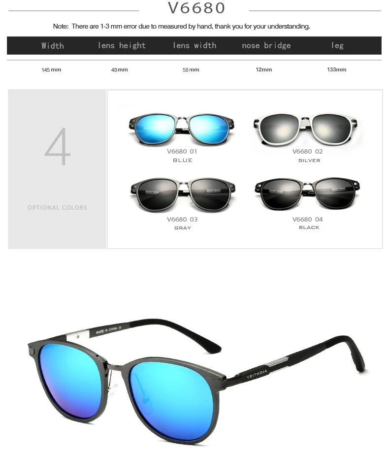 Мужские и женские солнцезащитные очки VEITHDIA, алюминиевые солнцез...