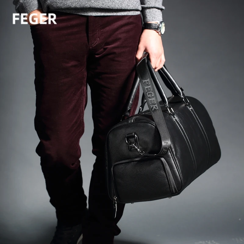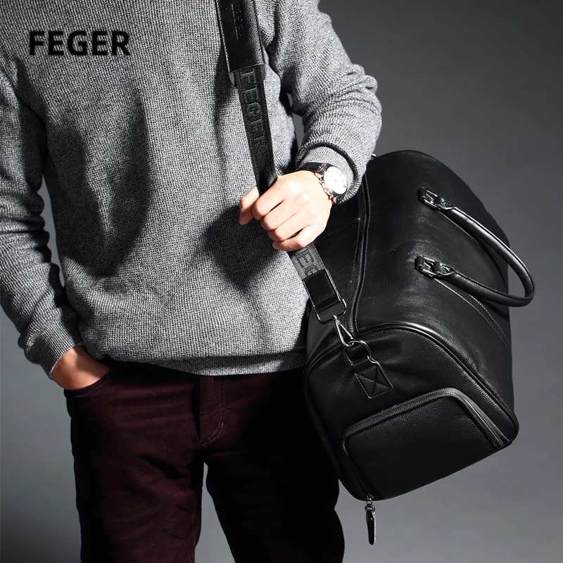 FEGER мужская сумка для путешествий из натуральной кожи, спортивная сумка на выходные, вместительная спортивная сумка для спортзала, женская брендовая деловая сумка для багажа