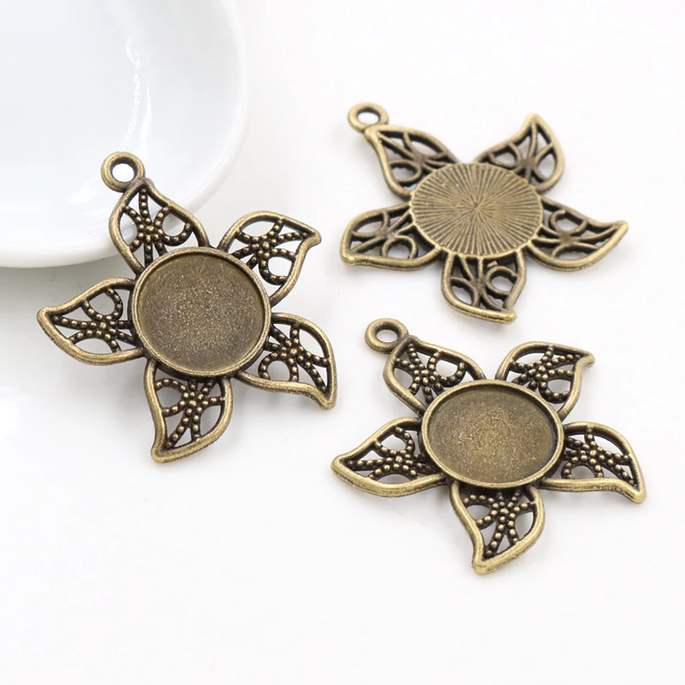 20шт 12 мм внутренний размер античная бронза пять точек цветок стиль кабошон базовая Камея Установка Подвески