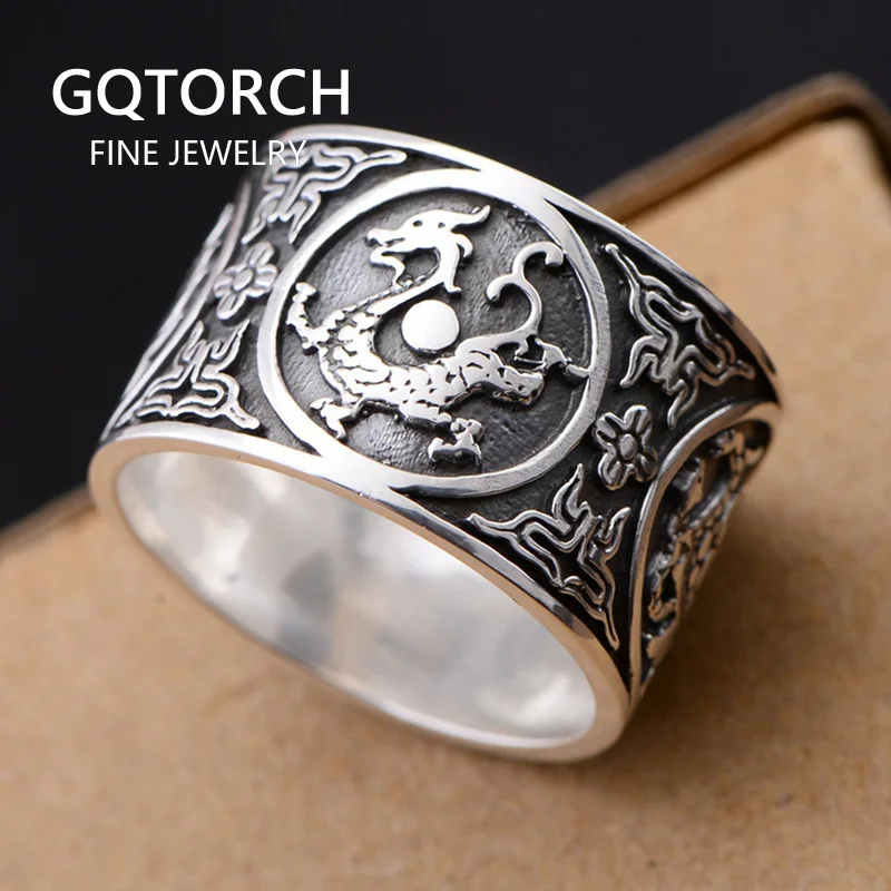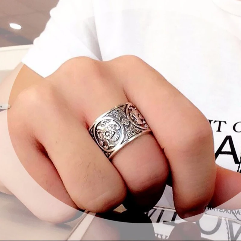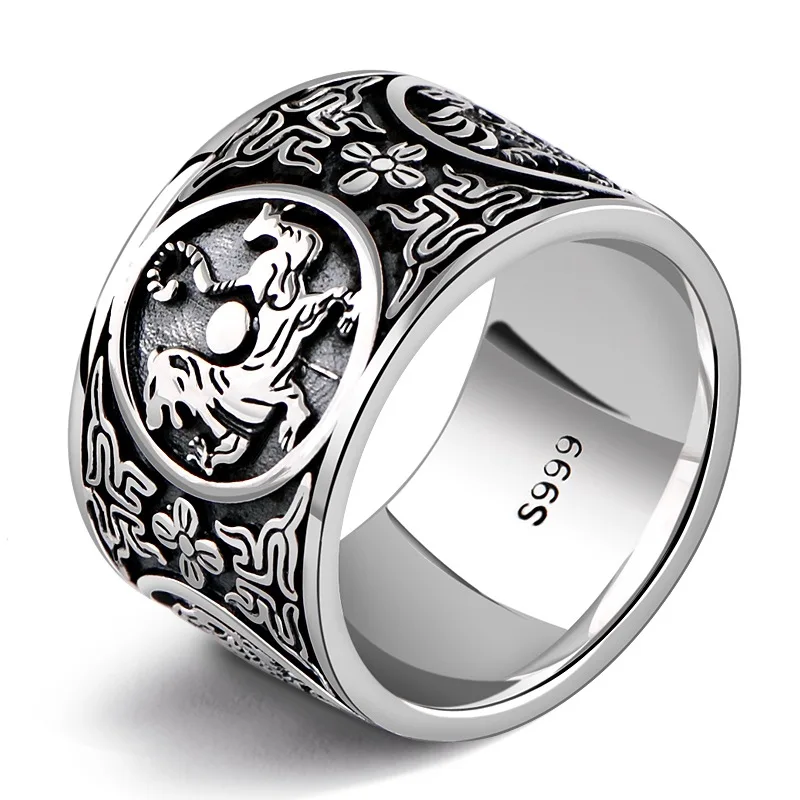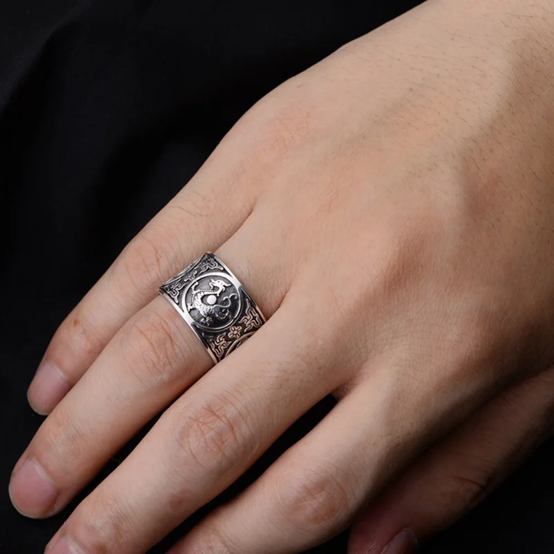 Мужские Винтажные кольца из серебра 999 пробы, 4 существа, дракон, тигр, птица, черепаха, Китайская традиционная культура, чистое серебро, ювелирные изделия