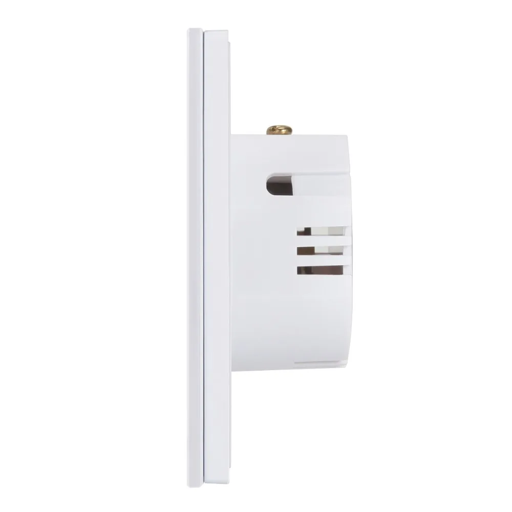 Откликается мгновенно , без щелчков, просто проведя по нему рукой , любой частью , можно влажной. Лицевая часть пластик или стекло.Выключателем довольны , огромный + пульт ДУ.Установлены в трех комнатах . будем устанавливать на кухню,ванну,туалет.Есть подсветка, в темноте хорошо видно.