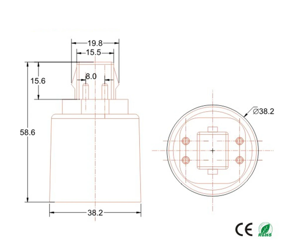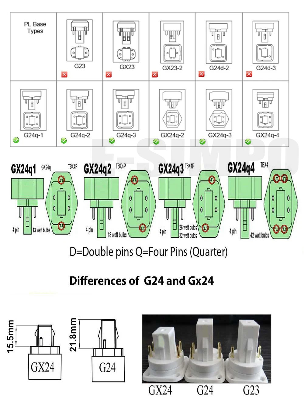 4-контактный адаптер для цоколя лампы GX24Q в E27, адаптер для цоко...