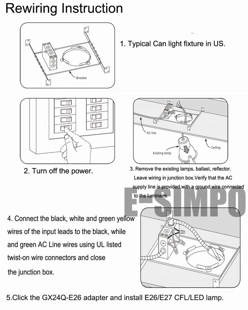 Адаптер CFL GX24q к E27 E26, адаптер GX24Q к E26E27, светодиодная лампа, требуется Выкидной балласт!
