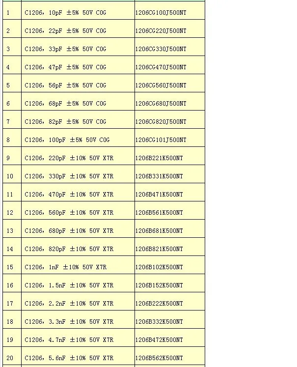 1206 SMD резистор 0R ~ 10 м 1% 170valuesx25шт = 4250 шт + конденсатор 38valuesx25шт = 950 шт 10пф ~ 22 мкФ книга образцов