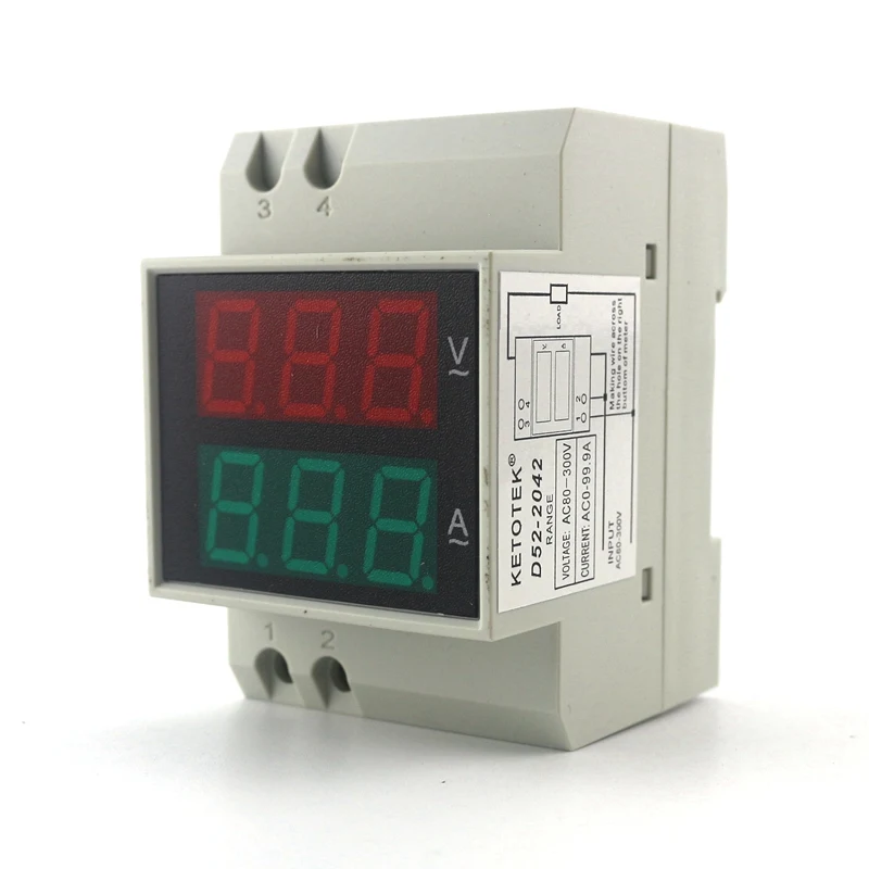 Цифровой вольтметр, амперметр с din-рейкой, напряжение, амперметр, измеритель тока, красный, зеленый, двойной светодиодный дисплей, AC 110 В 220 В 300 В 100A