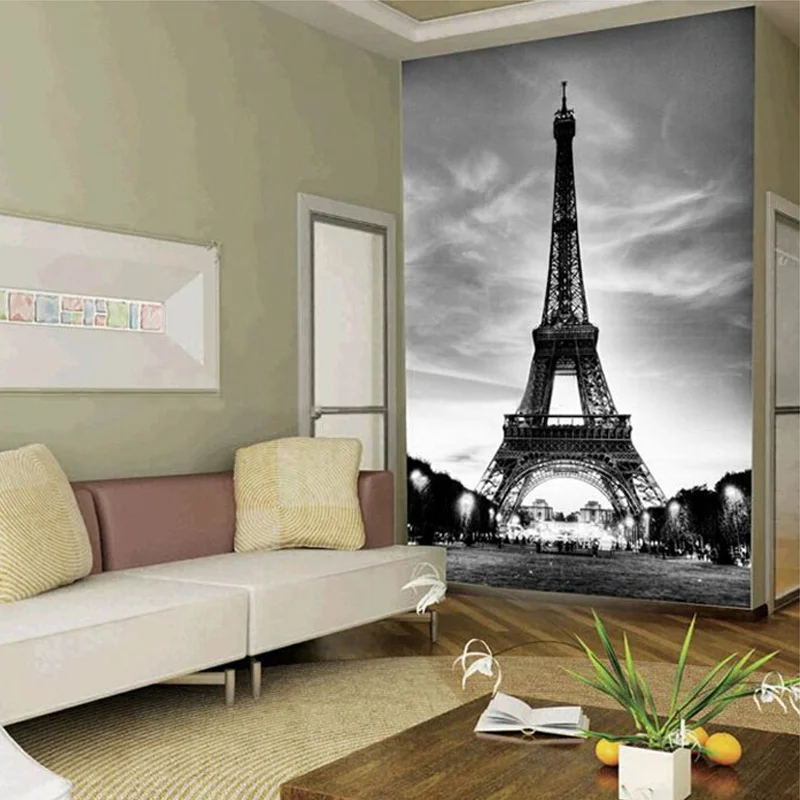 Высокое Качество Современная 3D Европейская Архитектура черно-белая Эйфелева башня фото обои для гостиной 3D Роспись Papel De Parede