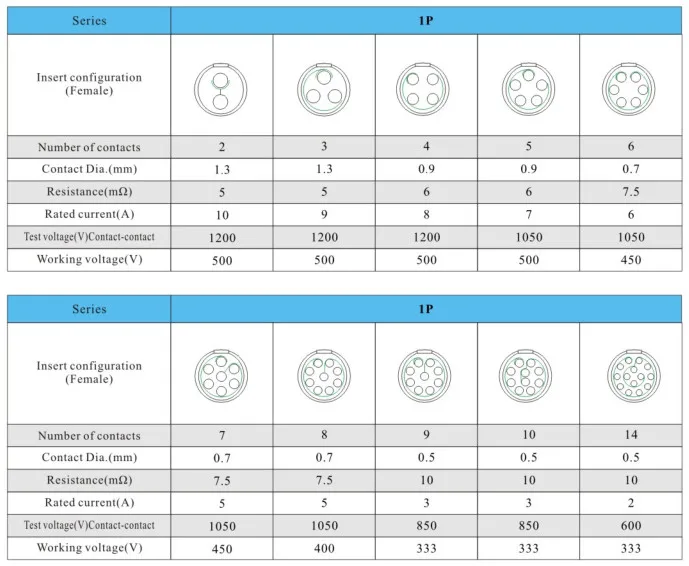 Пластиковый разъем серии P со следующими основными характеристиками:1) небольшой размер подходит для кабеля диаметром до 6,5 мм и позволяет до 14 контакты пайки.2) легкие и прочные материалы, система быстрой фиксации push-pull;3) Outshell-поликарбонат (ПК), изолятор-PPS, сертификат RoHs, можно стерилизовать газом или паром.4) Контакты позолочены поверх меди и никеля,5) прямые и локтевые; PCB и контакты пайки6) не менее 2000 циклов спаривания/спаривания без существенного влияния на электрические характеристики.7) Система записи в сочетании с цветовой кодировкой может предотвратить неправильное сопряжение.