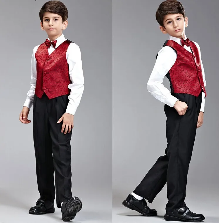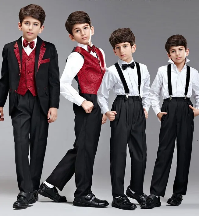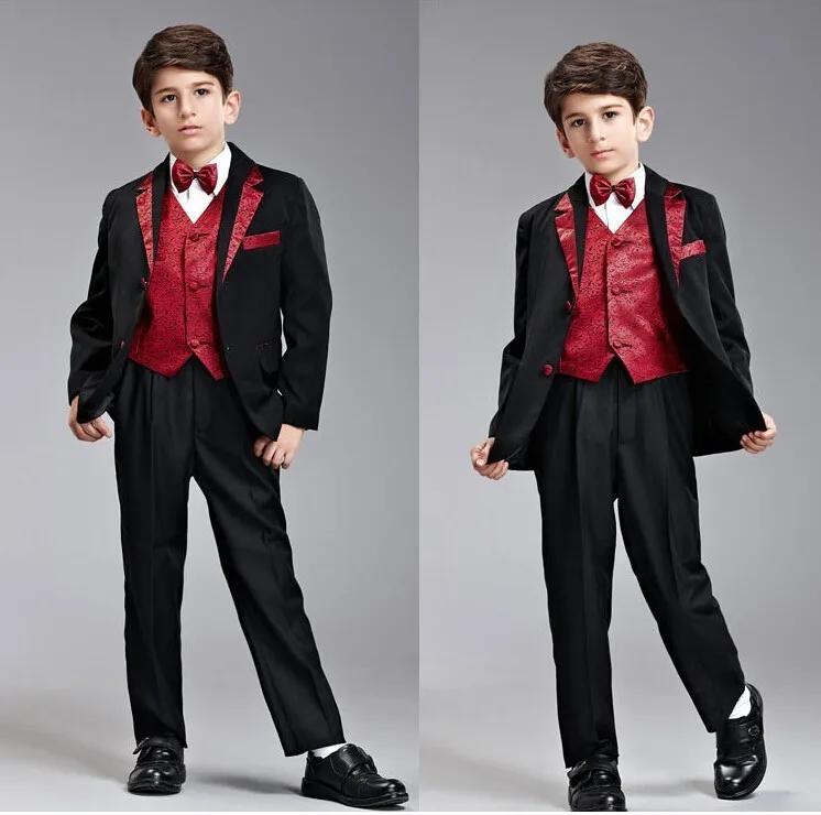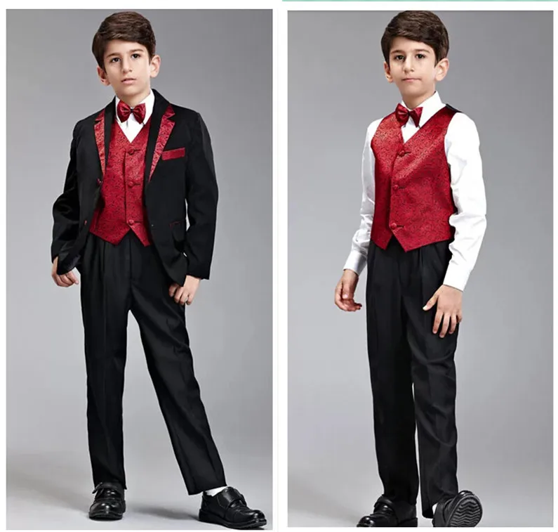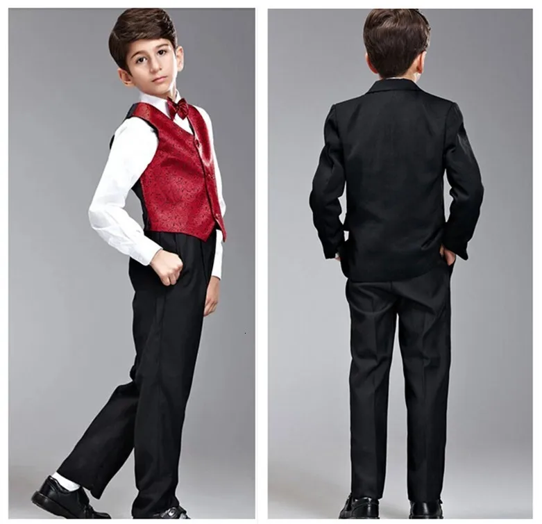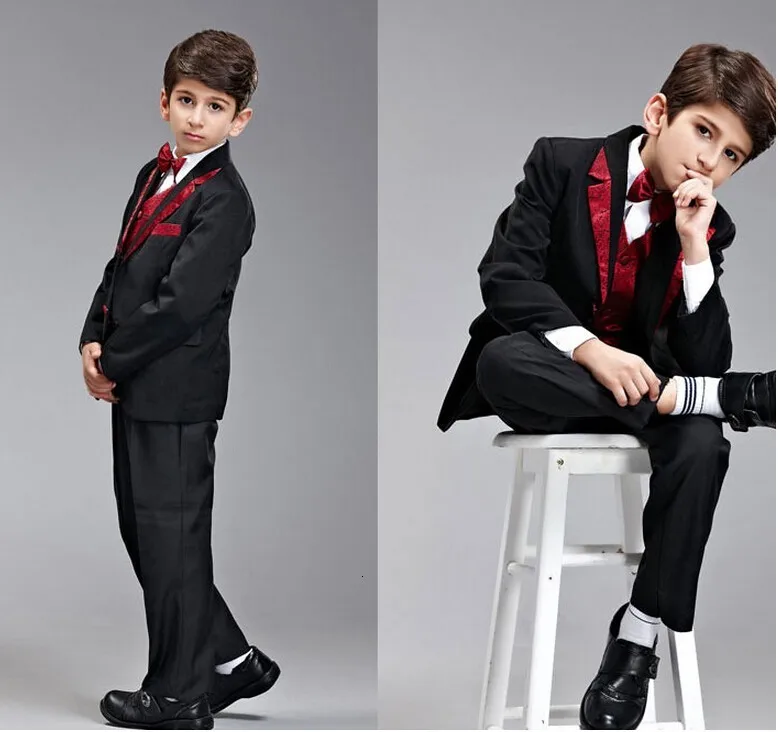Несерийный черный торжественный детский свадебный костюм для мальчиков Одежда для мальчиков костюм для мальчиков Смокинг пиджаки 5 предметов в комплекте F 1009
