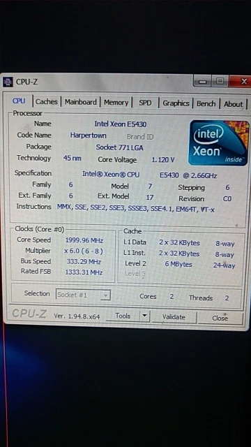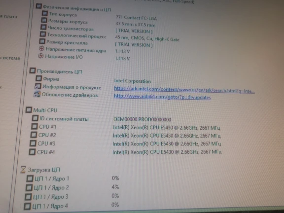 В Санкт-Петербург за 11 дней, супер! На Asrock G31M-S Rev 1.01 завелся без проблем на ОФИЦИАЛЬНОМ биосе 2.10, кастомный не понадобился. Все инструкции, какие положены для этого цп, в CPU-Z ПРИСУТСТВУЮТ! Ну и завершает картину то, что под бюджетном DeepCool Gamma Archer с терпопастой GD900 в стресс тесте AIDA64 - 45 гр. крышка, 53 гр. - внутренний датчик ЦП (да, TjMax в AIDA64 стоит 85 гр.). Вообще ГУД, видимо хороший, не гретый попался камушек. Но 120-ка бодрая на выдуве в корпусе стоит, учитывать надо. Четвертый раз заказываю Xeon'ы в ReStore - всё огонь и быстро приезжает. Спасибо!