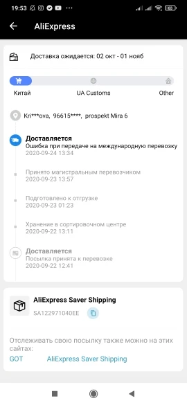 Страна: TH Доставка: Cainiao Super Economy Global 06.10.2020