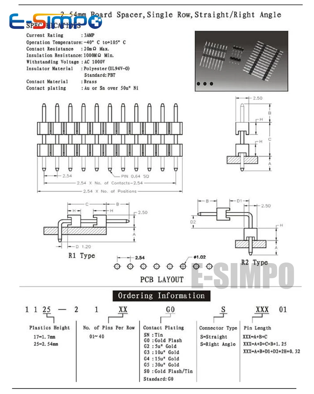 20 шт. 2,54 мм разделитель платы 1X40P прямой одиночный ряд двойной пластиковый L11.4-15-19-21-30-35-50 мм Goldplate Rohs Pcb Male Pin Header