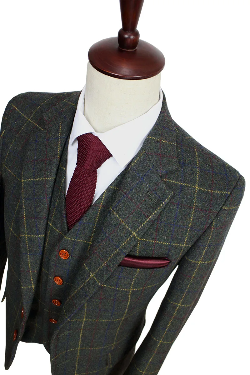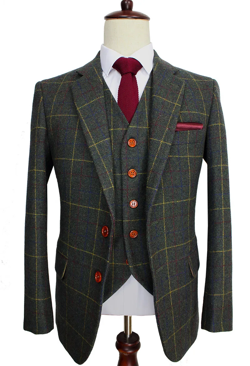 Высококачественный твидовый костюм в клетку, сшитый вручную, светильник синего, красного и желтого цветов.Это Ограниченная серия ткани с современной тонкой посадкой.Коричневые пуговицы в тон придают Превосходный вид.Это абсолютно потрясающий высококачественный твид