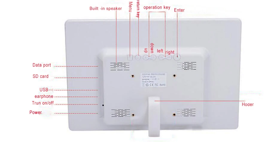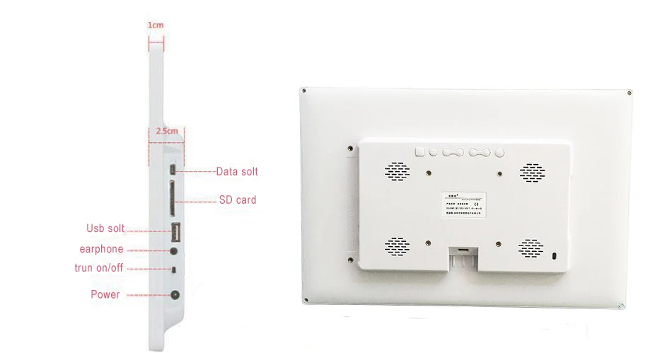 Размер цифровой фоторамки: 335*230*25 мм