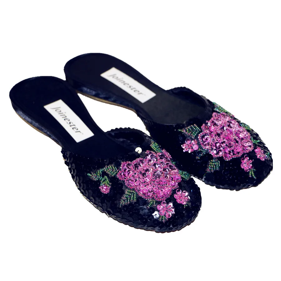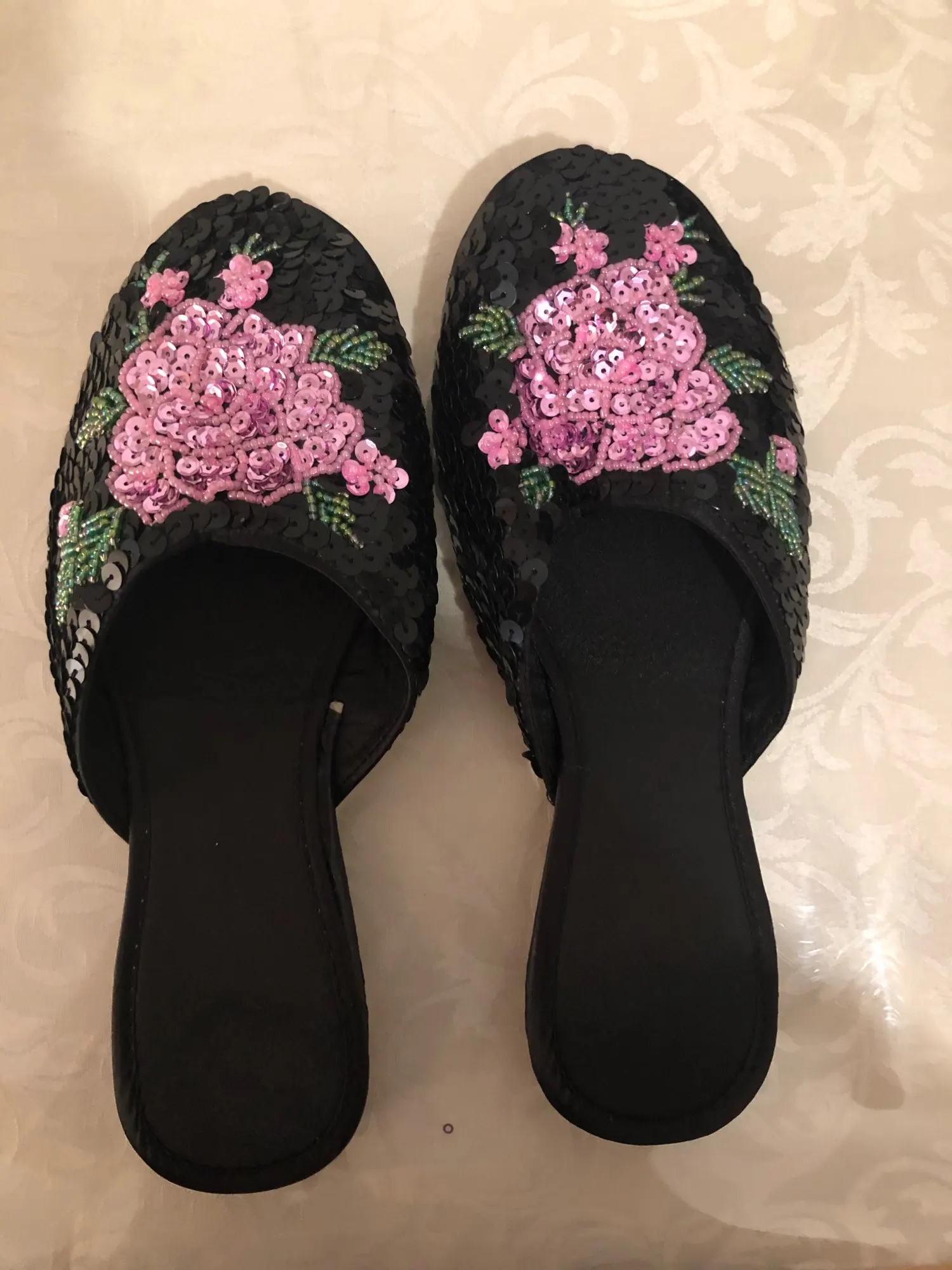Шлепанцы женские с блестками, уличные тапочки на плоской подошве, шелковые и атласные домашние туфли, сверкающие модные мюли, винтажные Летние сланцы