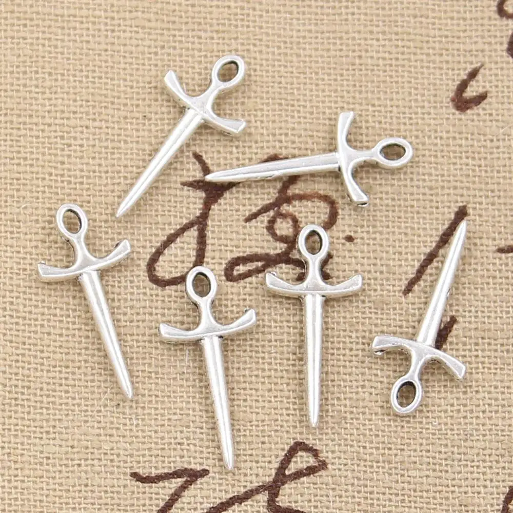 Подвески в виде кинжала 21x10 мм, 30 шт., винтажные, тибетский серебристый цвет