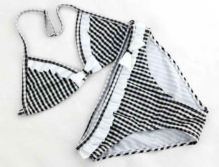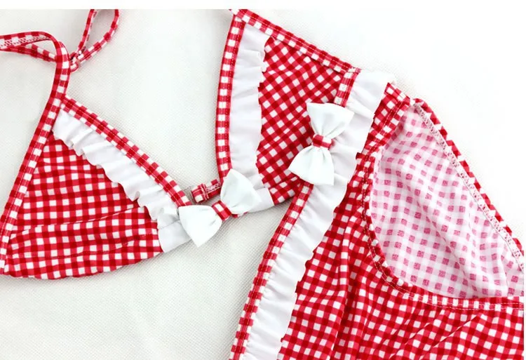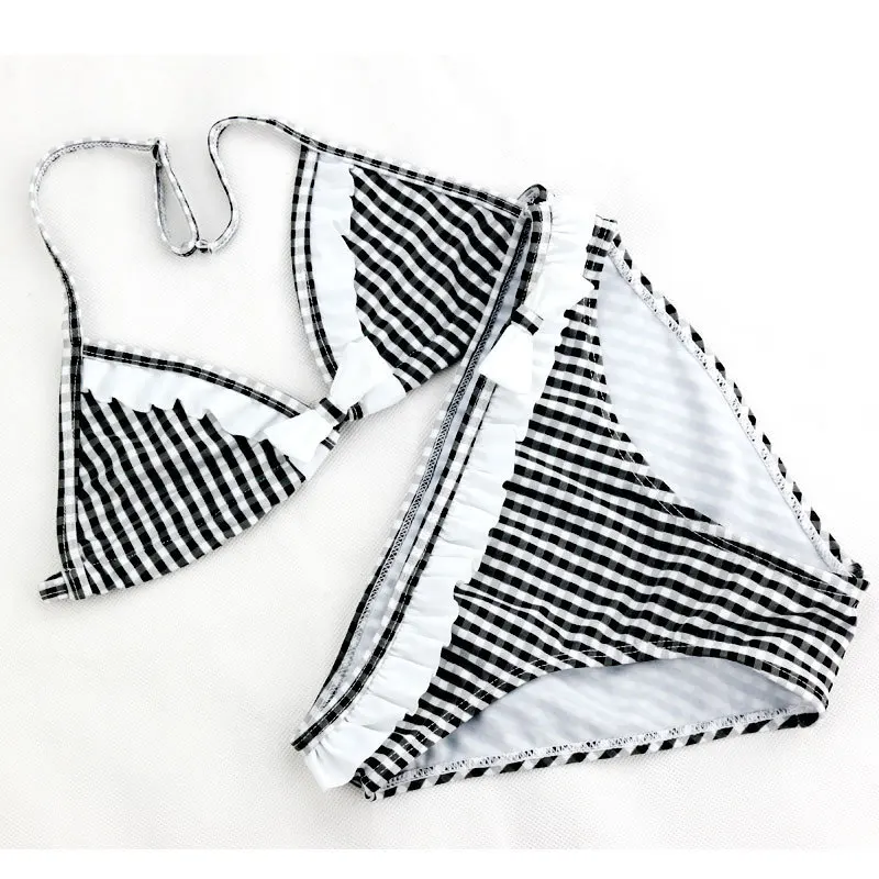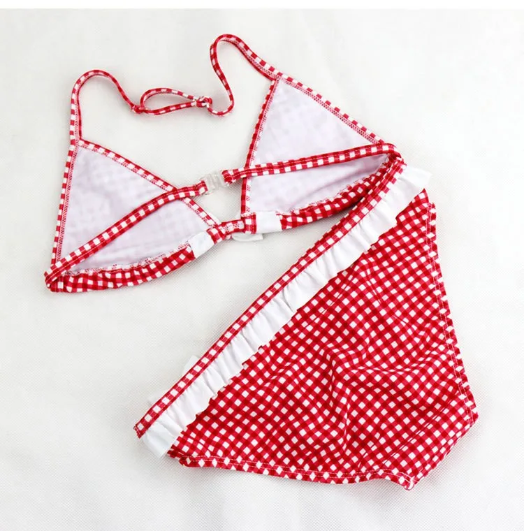 Милый клетчатый купальник, Новинка лета 2021, детский раздельный купальник из двух частей, бикини для девочек, красивые бикини для девочек, детские купальники