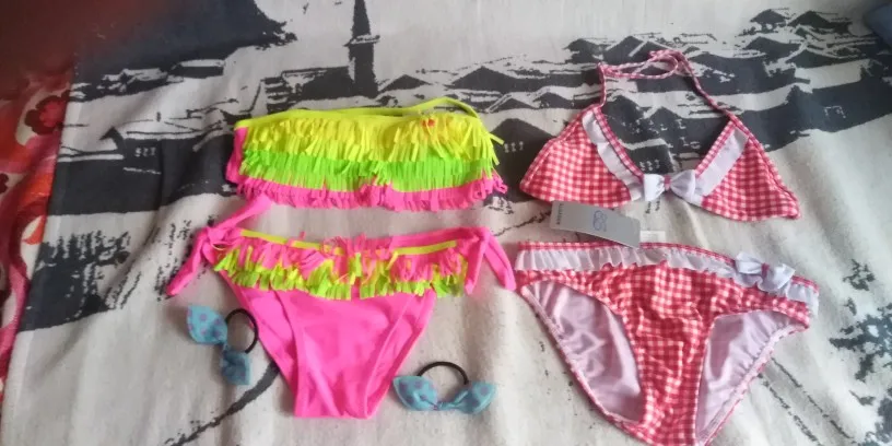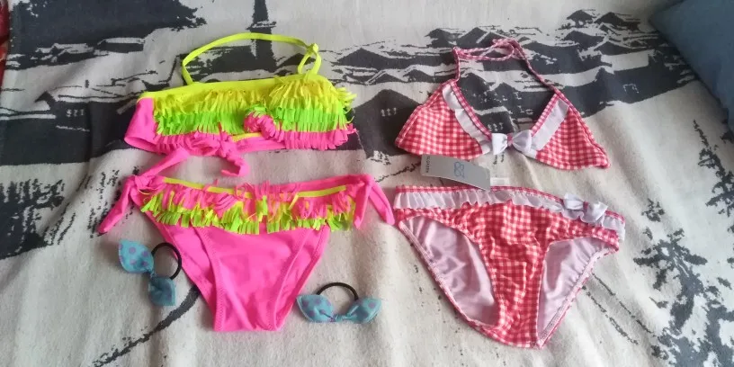 В посылке пришло 2 купальника от разных магазинов. Пришлось сравнивать. Купальник(красно белая клетка) подошёл замечательно на рост 135 см. 14 размер-чудесно! Ткань немного хуже и пошит так, что можно придраться в отличае от розового.