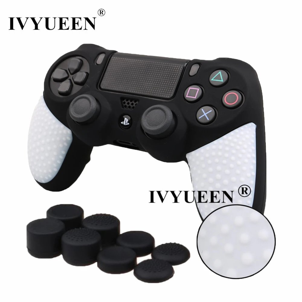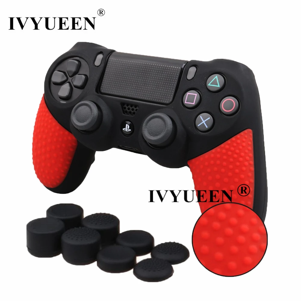 Противоскользящий силиконовый чехол IVYUEEN для Dualshock 4 PS4 DS4 PRO Slim, защитный чехол для контроллера с насадками для большого пальца