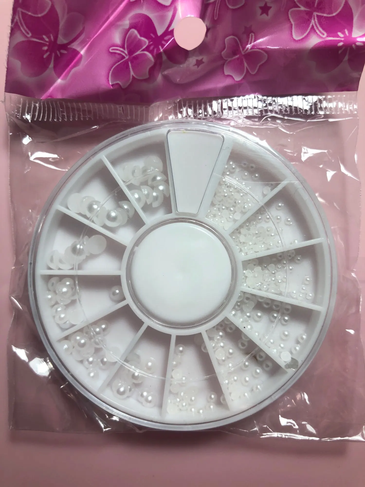 Все как на фото, бусинки разных размеров, но все достаточно мелкие. отлично подходят как для дизайна ногтей, так и для макияжа