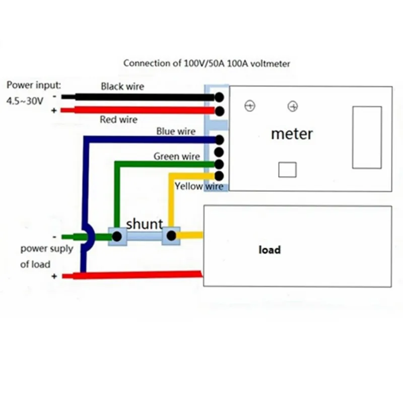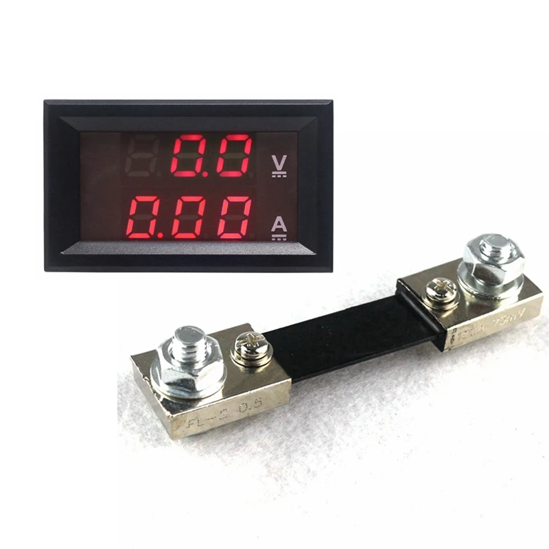 Двойной цифровой вольтметр Амперметр постоянного тока 0-100 в 50 а Амперметр измеритель напряжения тестер мониторная панель с шунтом