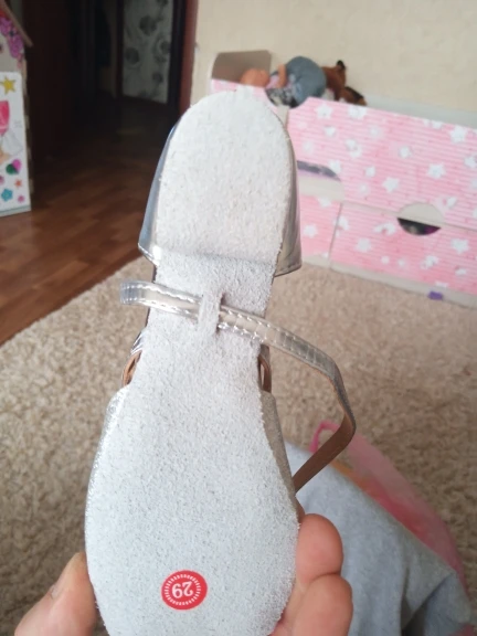 Супербыстрая доставка! Продавец молодец! Качество на высоте. Для сравнения рядом наши туфли за 2100 рублей 25 размера, которые почему-то на 0.5 см меньше, чем эти 24 размера. Брали за 589 рублей. Разницы не вижу. Буду заказывать ещё, пока дочка танцует.