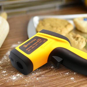 Этот цифровой инфракрасный термометр компактен и прост в использовании. Это очень полезный элемент для измерения поверхности горячих, опасных или труднодоступных объектов без необходимости касаться их. Вы просто направляете с помощью лазерной точки, нажимаете кнопку и читаете температуру менее чем за секунду.