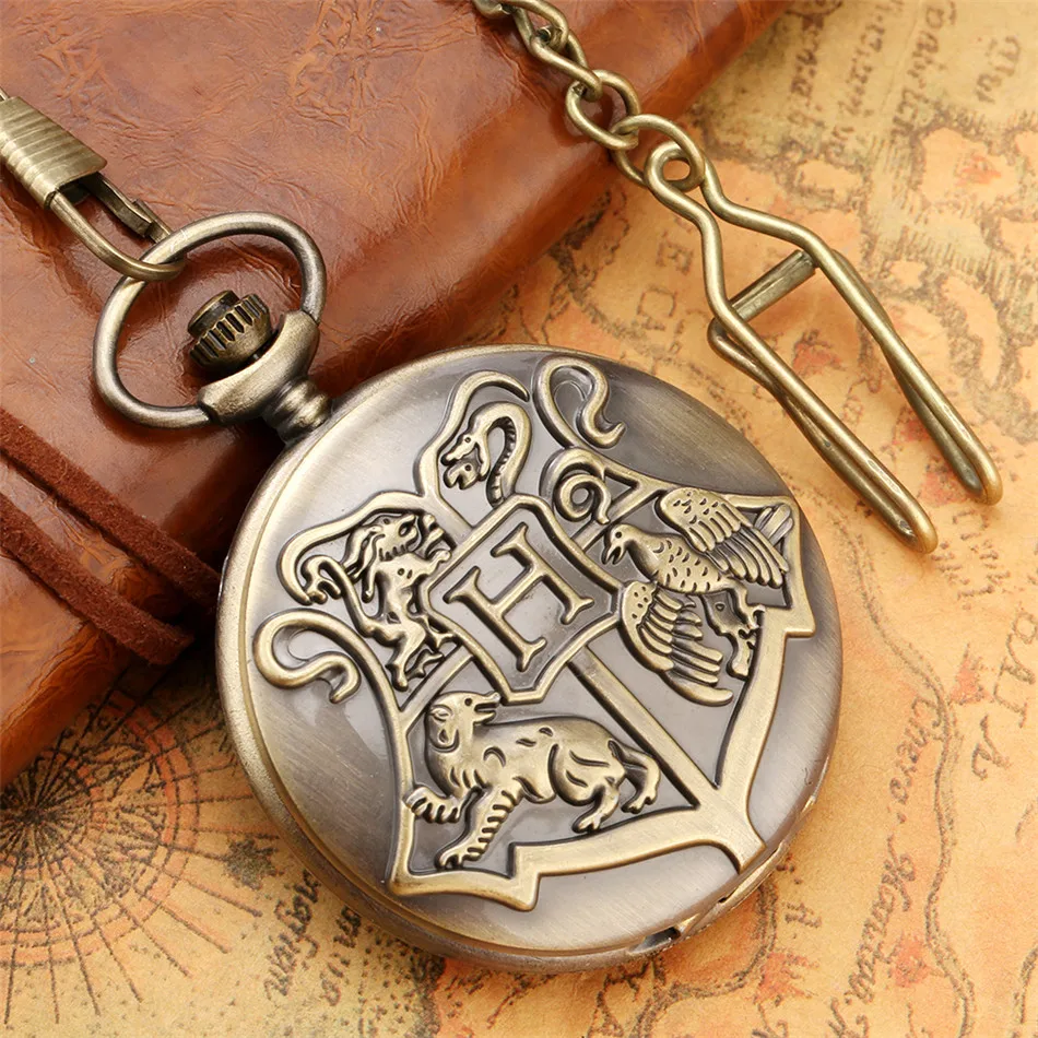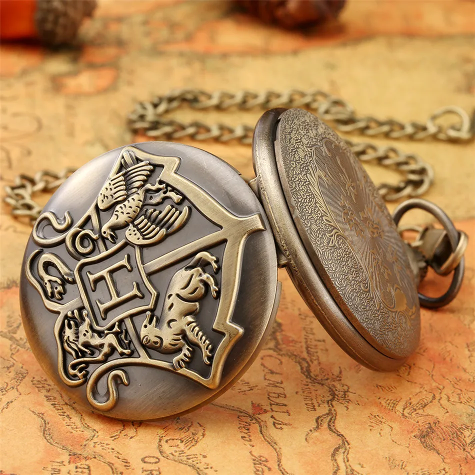 Часы мужские с бронзовым кварцевым подвеской, Волшебная школьная тема, карманные часы с длинной цепочкой, античный подарок для косплея, цепочка