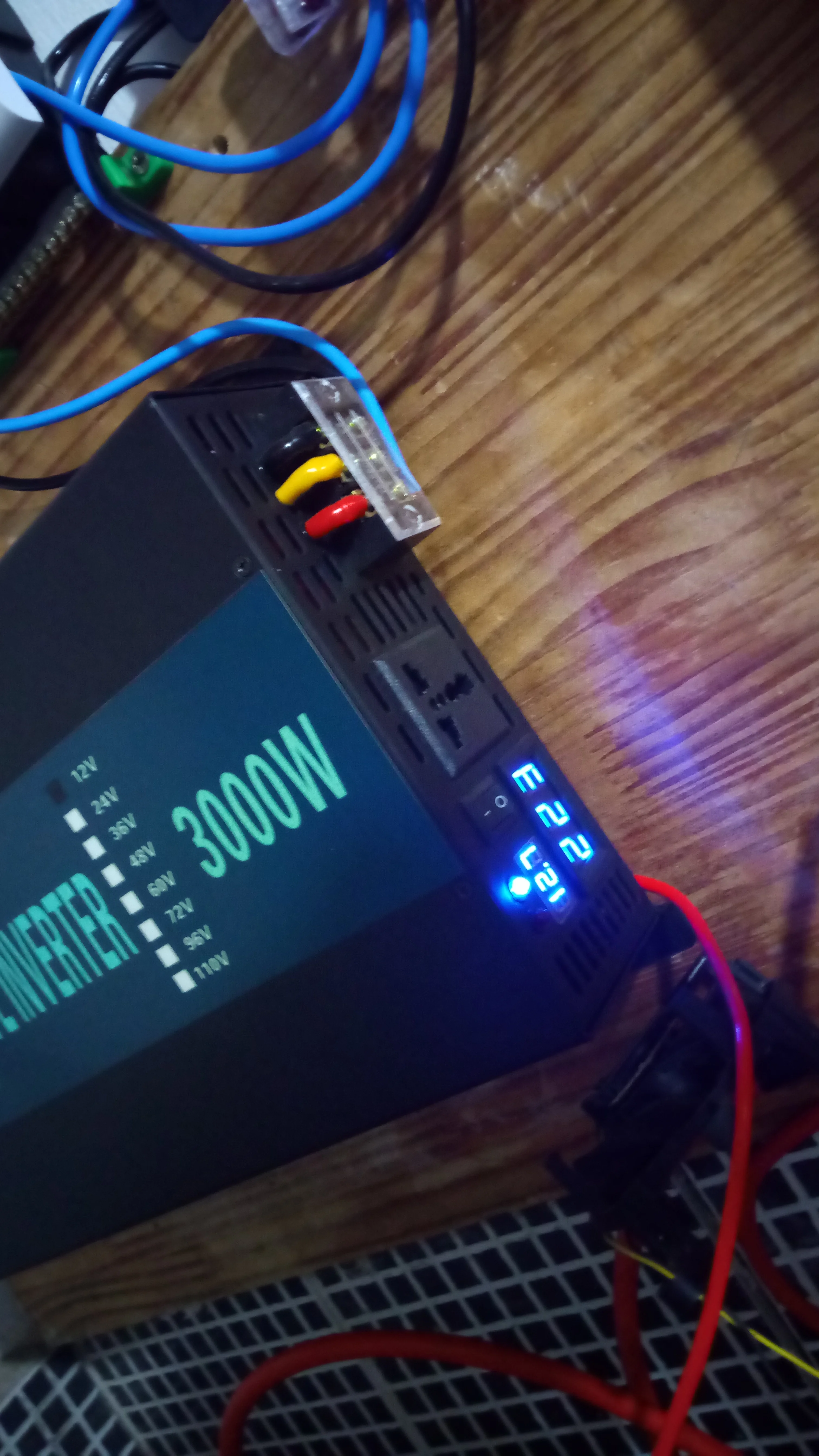 Напряжение батареи падает во время использования. Когда он ниже номинального напряжения, инвертор автоматически отключает входное напряжение для самозащиты.