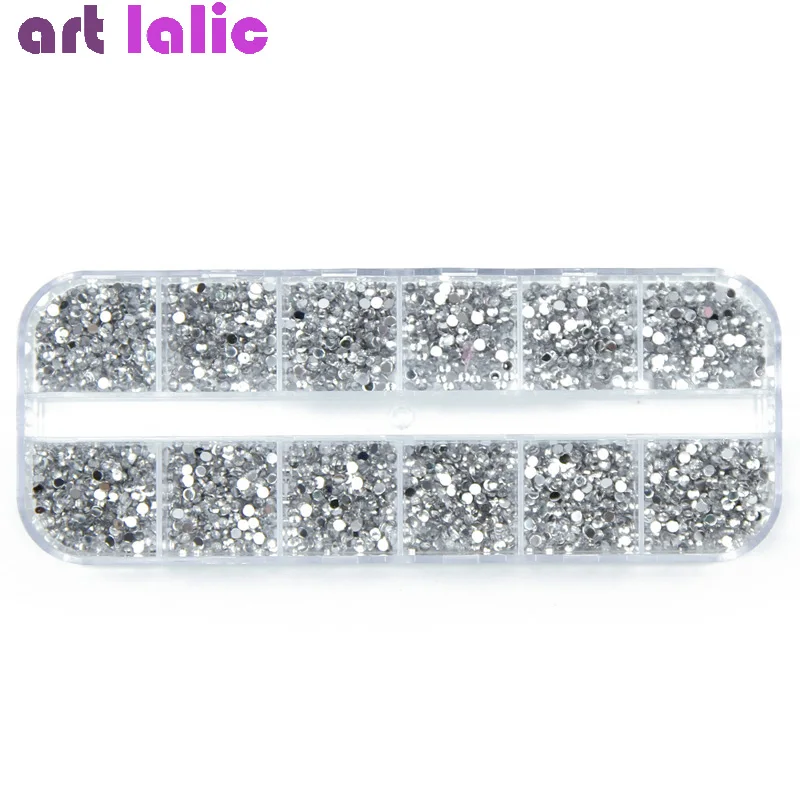 Стразы для дизайна ногтей, серебристые, 2 мм, круглые, 3600 шт.