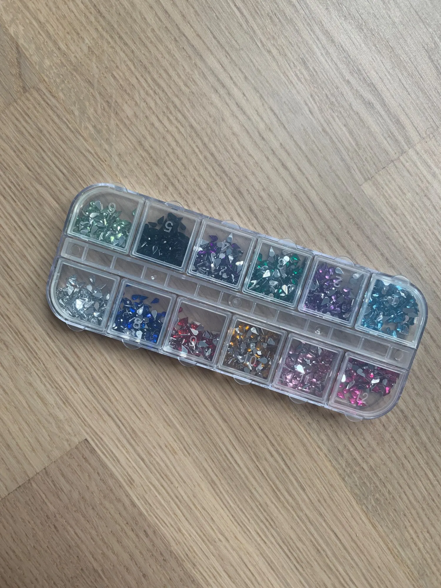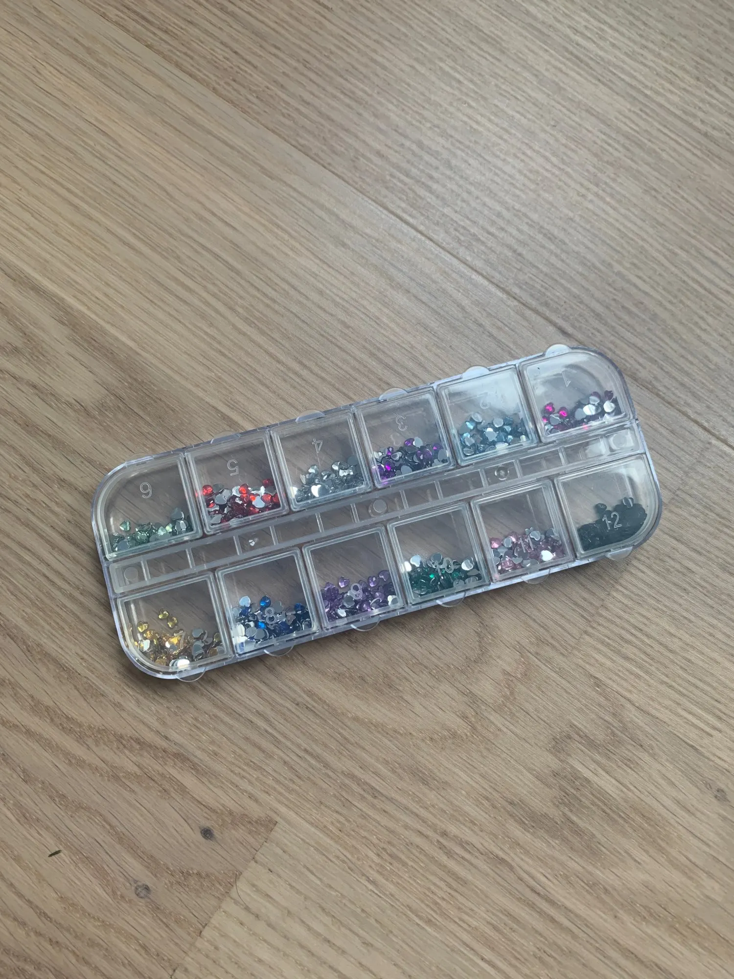 Majority of the rhinestones had a silver metallic coat on them. Sort of blocking the colour.
