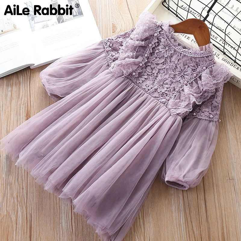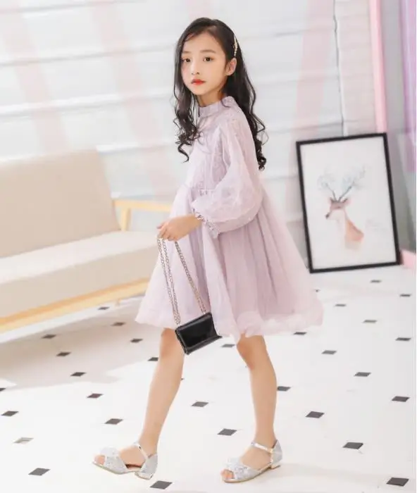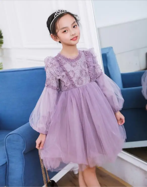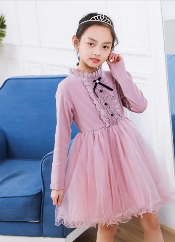 Осеннее кружевное платье с вышивкой для маленьких девочек, празднив...