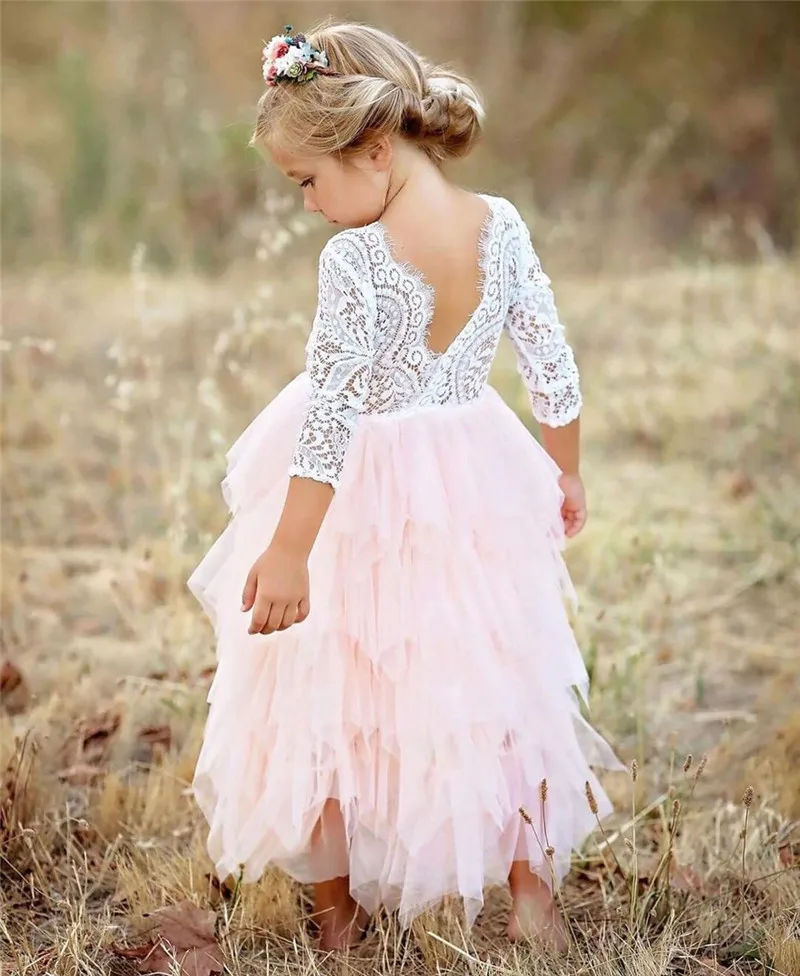 Повседневные платья для девочек, модное розовое платье принцессы с цветами, вечерние кружевные платья, свадебное платье, осень 2019